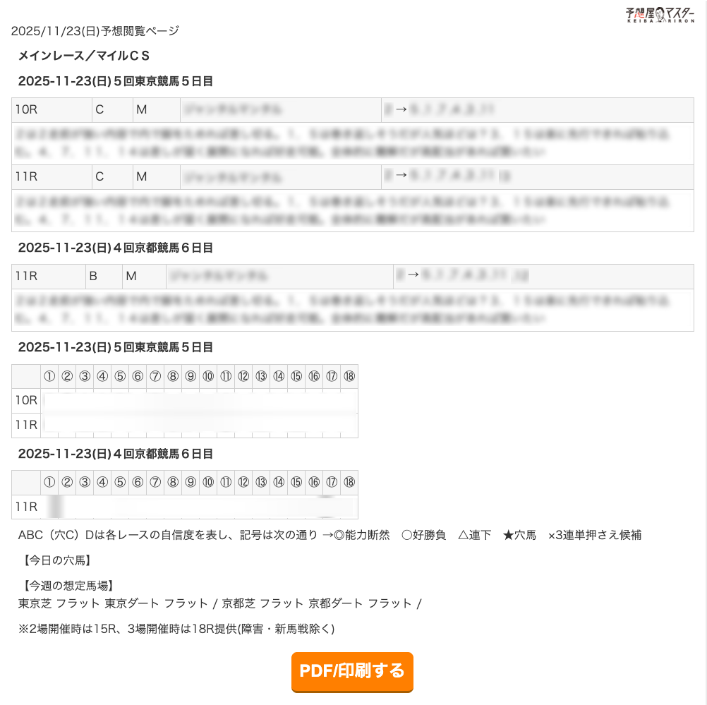 有料会員ですが、PDFファイル予想のダウンロードする場所、またサイトから予想閲覧をする場所が分かりません