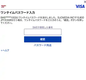 ご登録のクレジットカード会社が呼び出しされたワンタイムパスワード入力画面が表示されます。この画面で、ご登録の携帯電話のSMS宛にワンタイムパスワードが送信された旨が表示されますので、ご確認ください。