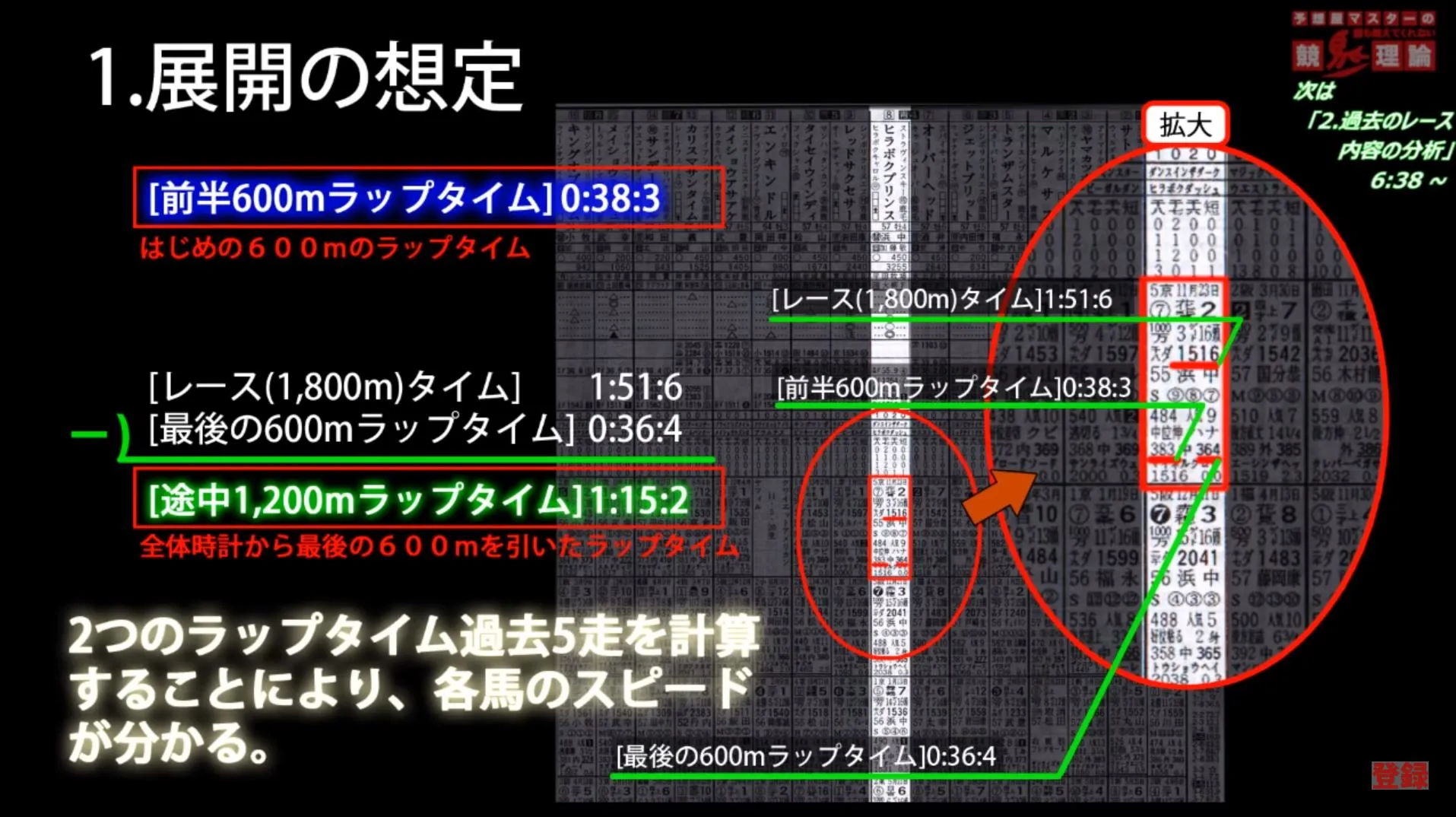 - 出走馬の過去のラップタイムから各馬の特徴や能力を見極め、レースの展開を想定