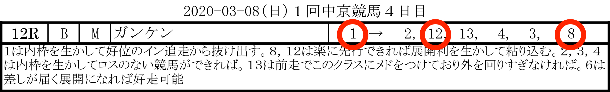 [的中!] 3連複1-8-12/10,180円(31番人気)