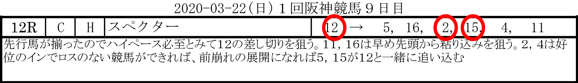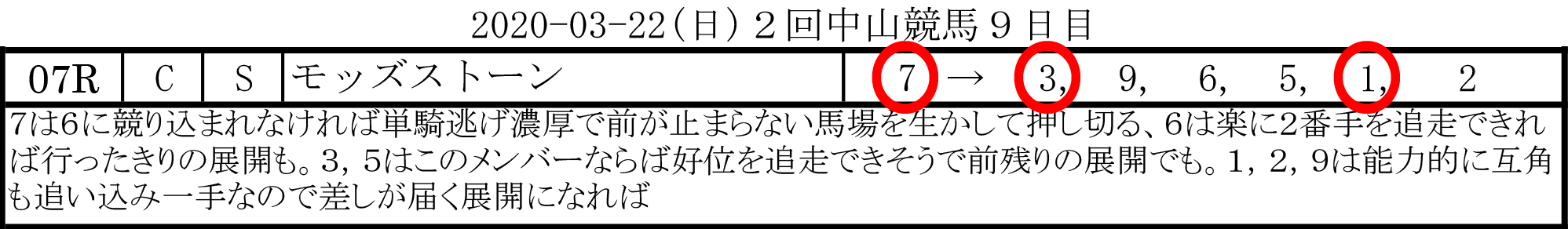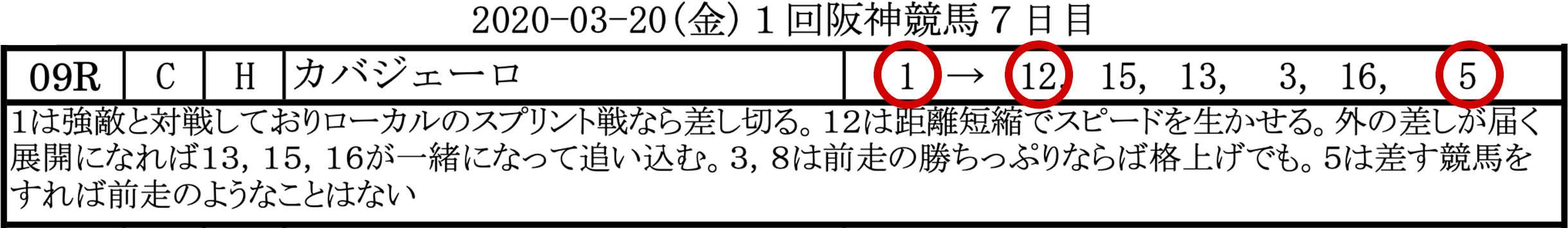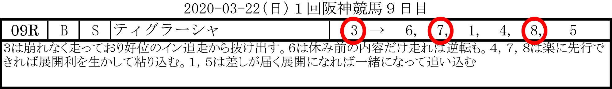2020-03-20(金)1回阪神競馬7日目