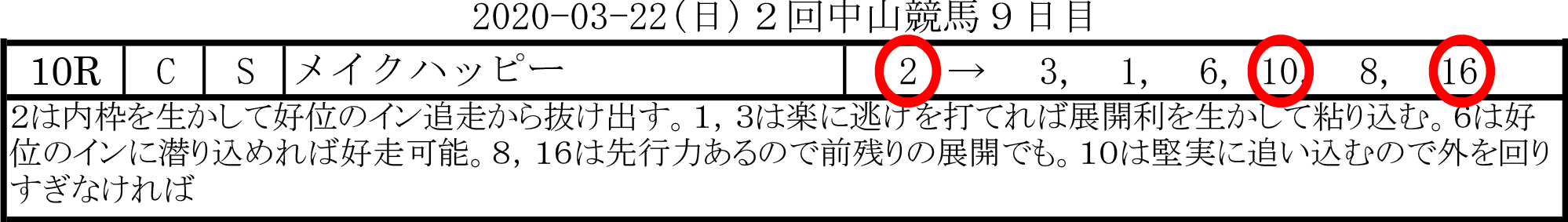 と評価。私も前走を確認してみましたけど、?ちょっと何言ってるか分かんない(笑)