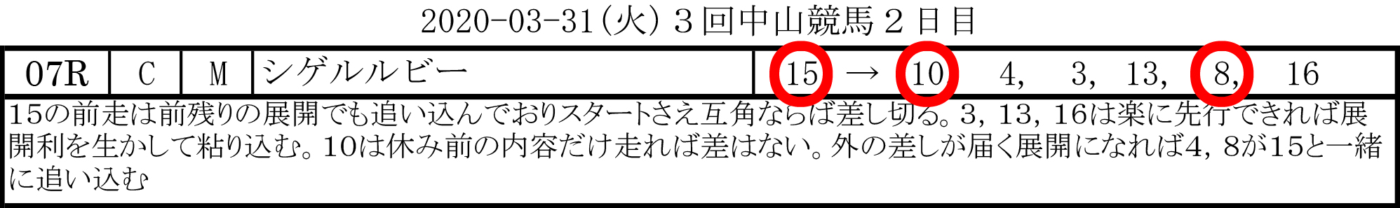2020-03-31(火)3回中山競馬2日目
