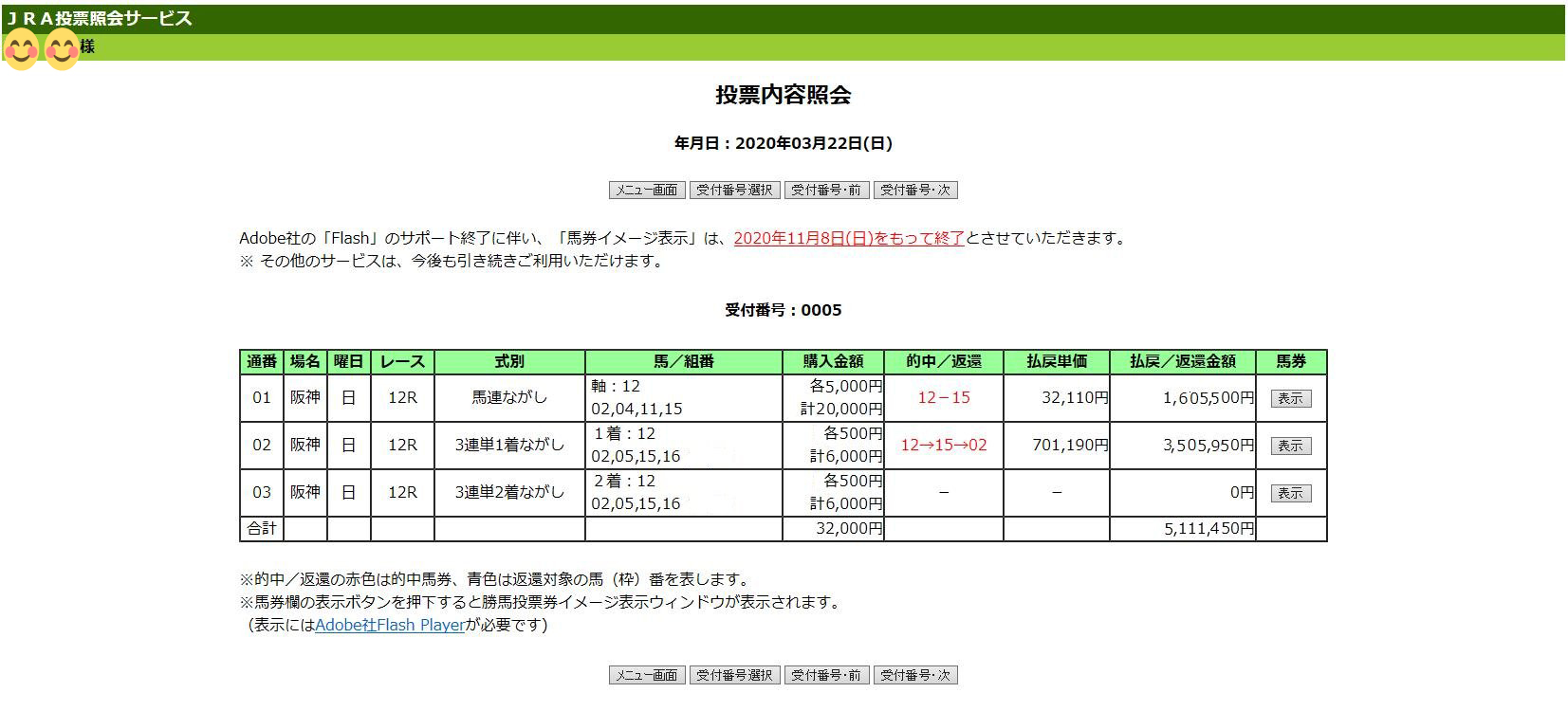 マスターが、03/22(日)オンラインセミナーDAYに5本の高配当を的中、阪神12Rでは3連単7,011倍(馬連321倍、馬単493倍)の超・高額配当を的中しました!!!