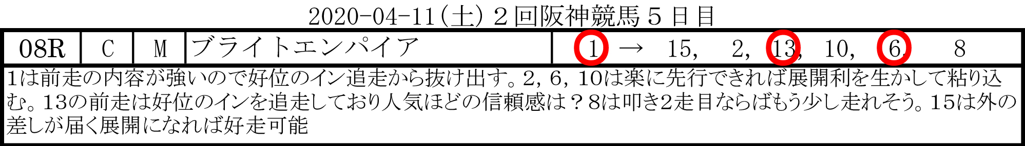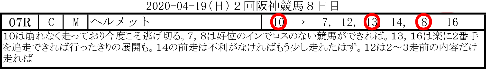 2020-04-19(日)2回阪神競馬8日目