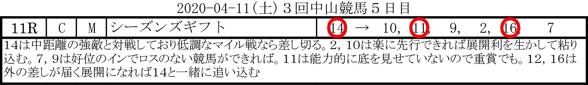 [的中!] 3連複11-14-16/8,880円(35番人気)