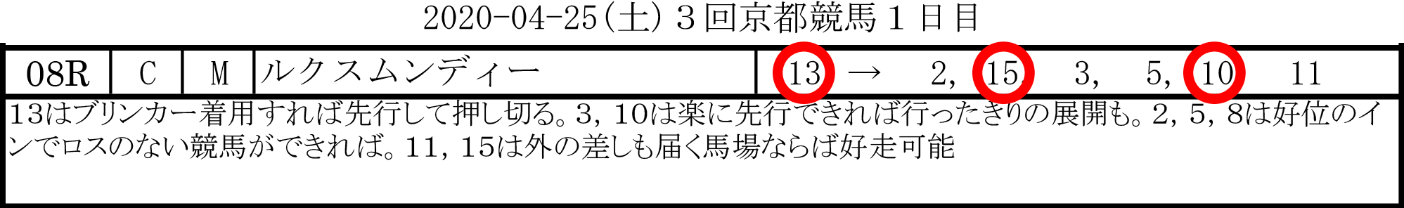 2020-04-25(土)3回京都競馬1日目
