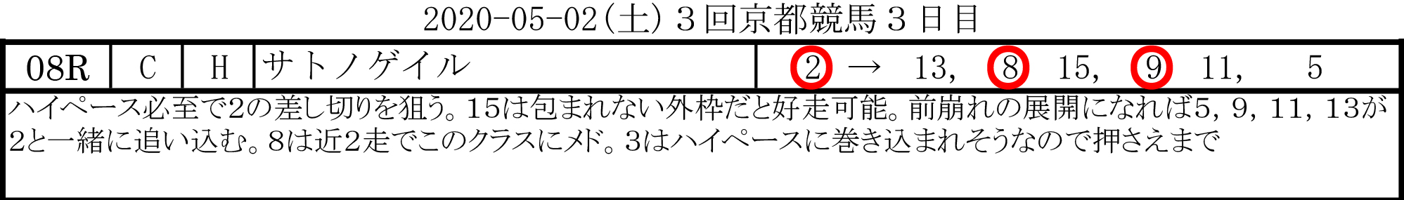 先行馬が多くハイペースになるとみて、マスター軸は2番サトノゲイル(5番人気)の差し切り。