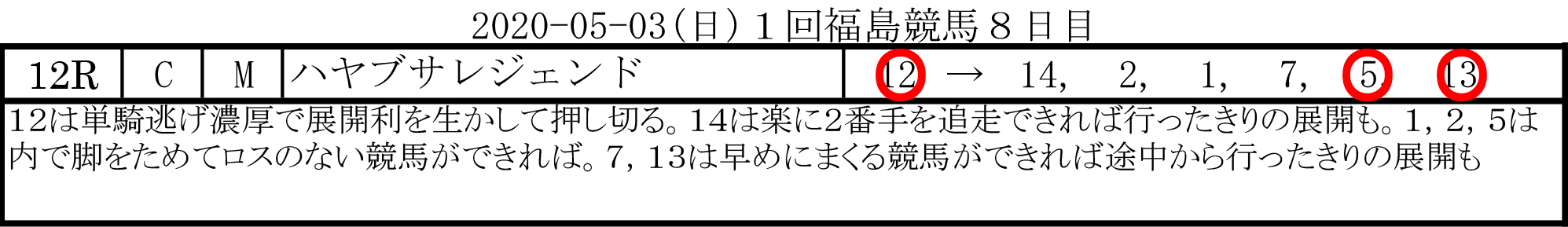 [的中!] 3連単12-13-5/33,500円(74番人気)
