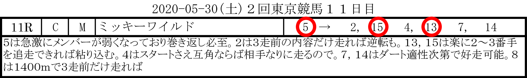 ここまでメンバーが弱くなれば、ということでマスター軸はミッキーワイルド(1番人気)でしたが追い込んで2着まで。