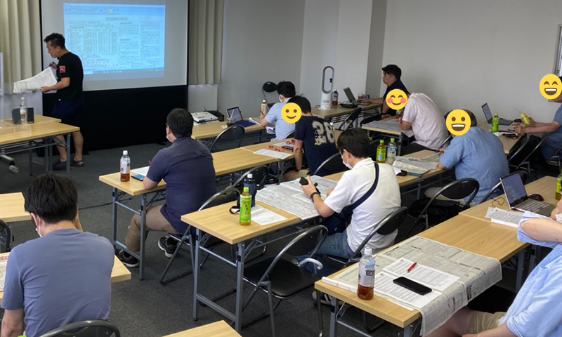 また、コロナウイルス感染拡大防止策で、窓を開けて扇風機を2台回して換気していたため、エアコンも快適に効いていたとは言えない状況でしたが、会員様にはご理解いただき、全員じんわりと汗をかきながらのセミナーとなりました。