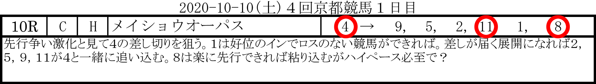 「先行争い激化」とみて4番メイショウオーパス(4番人気)の差し切りと予想したマスター。