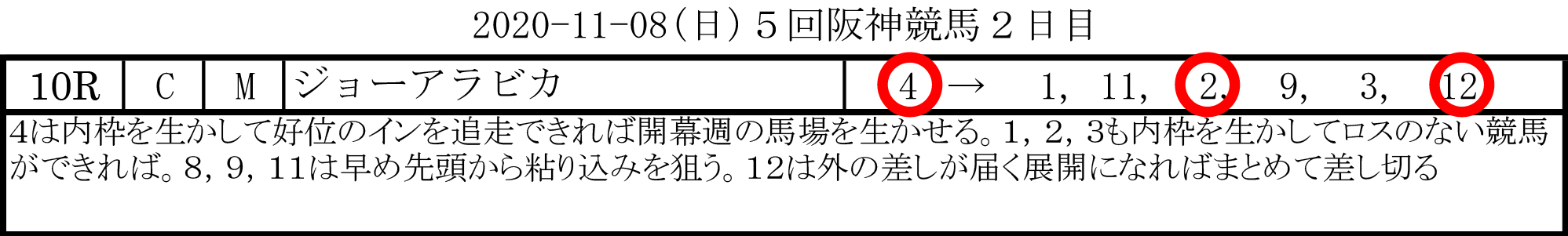 2020-11-08(日)5回阪神競馬2日目