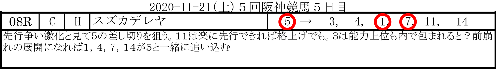 2020-11-21(土)5回阪神競馬5日目
