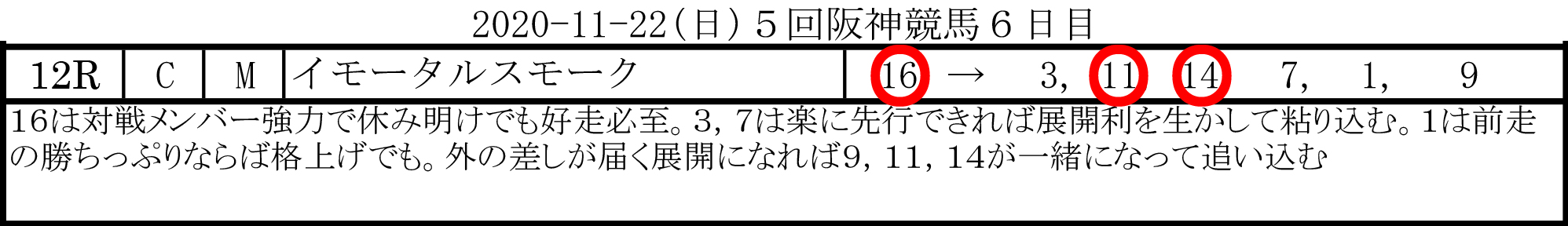 2020-11-22(日)5回阪神競馬6日目