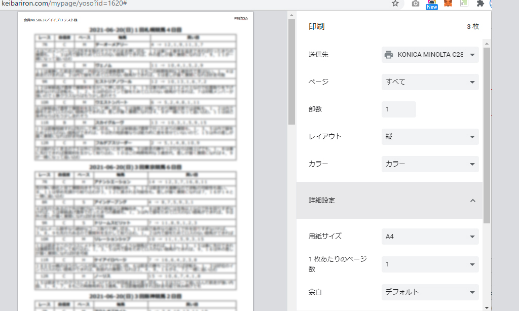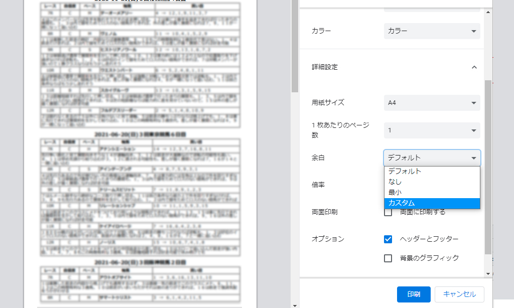 予想閲覧ページは、きるだけ大きく表示して欲しいというご要望多く、 この度、以下にて左側に余白を入れて印刷する方法の手順をお送りします。