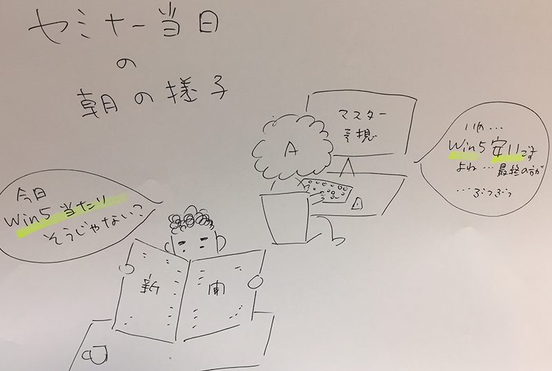 👶 だってWIN5って最初で外したら盛り下がるじゃないですか~。だったら最終買ったほうが盛り上がると思うんですよ!