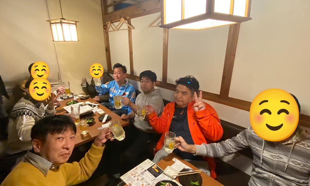 (笑い、喜びの絶え間ない2次会に!! ※一部の会員様より、写真掲載のご許可をいただきました。ご協力に感謝申し上げます🐴)