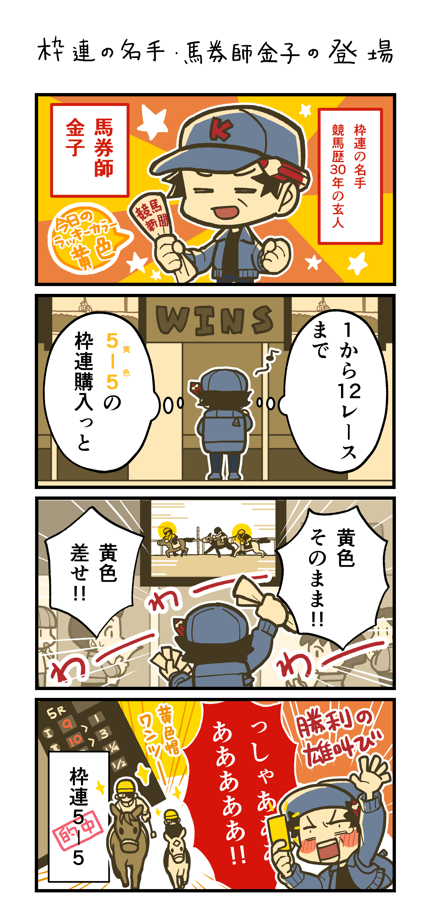 > 【4コマ漫画】馬券師金子「枠連の名手登場」【Vol.1】