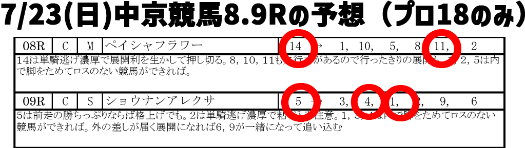 7/23(日)的中した中京8.9Rの予想
