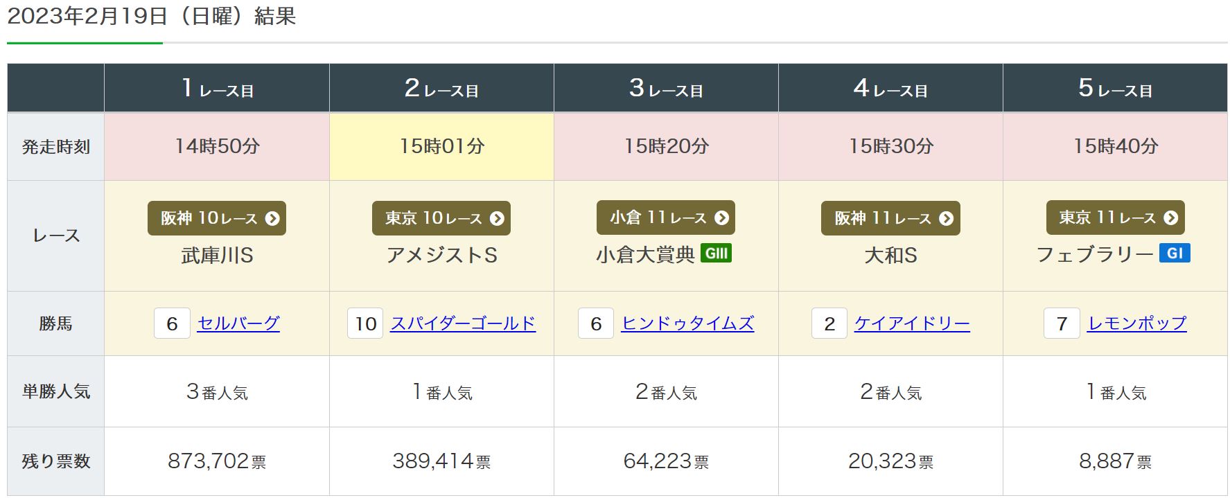 2/19(日)小倉11R小倉大賞典で高配当が出ました。