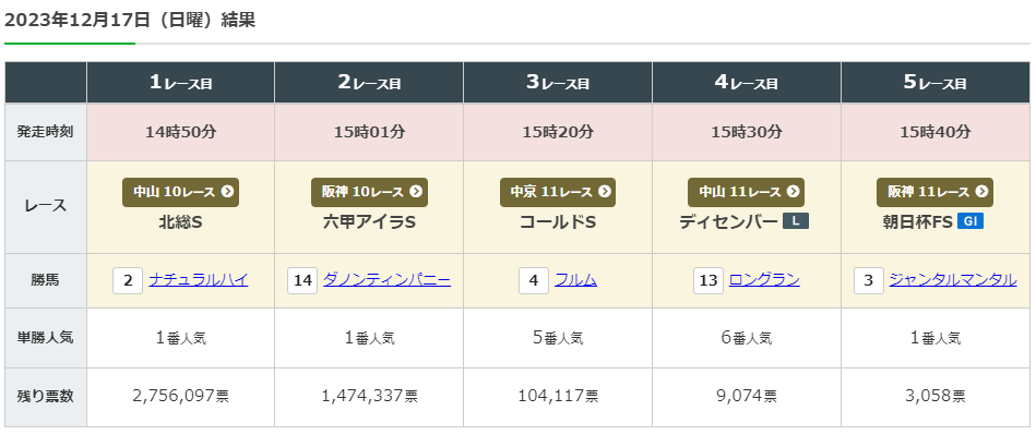 2023-12-17(日)WIN5予想的中