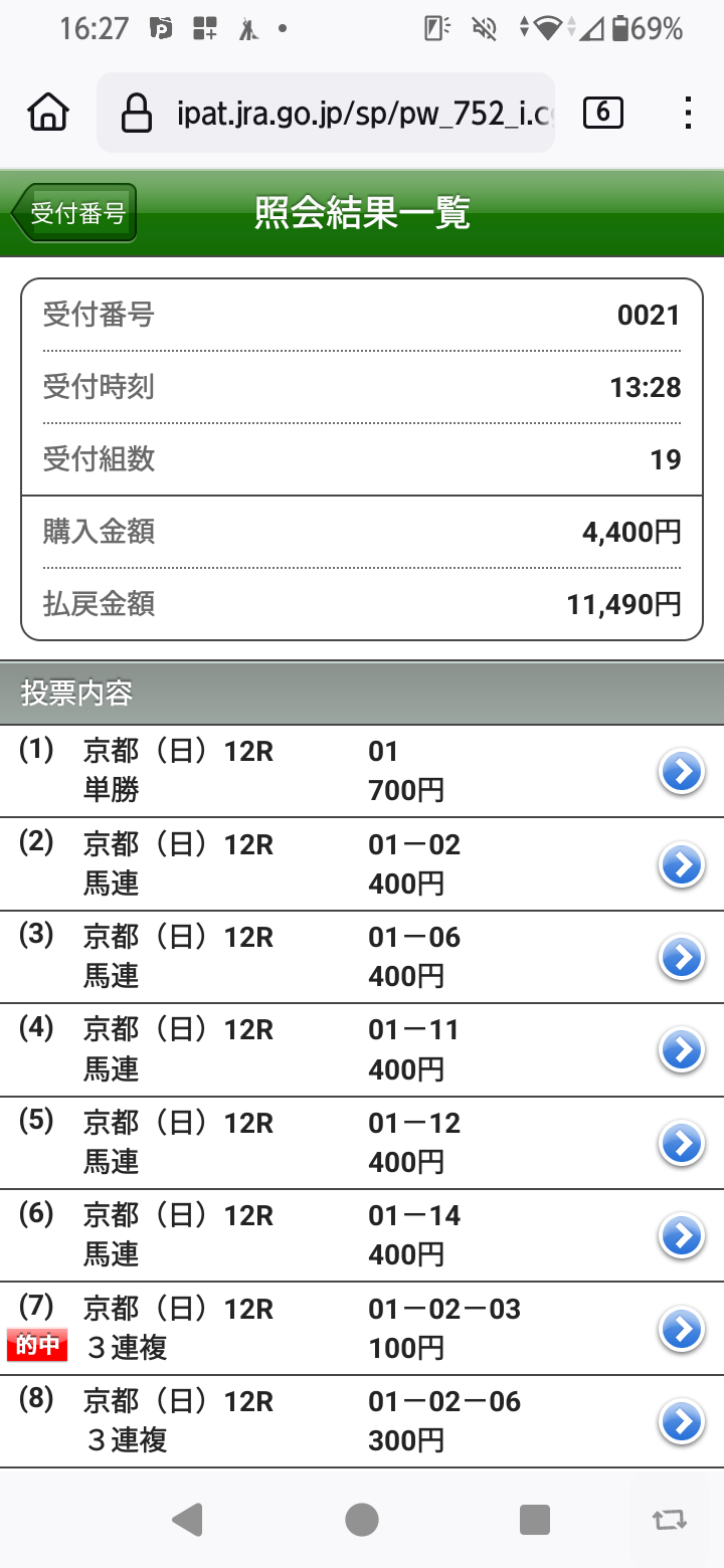 昨年の「」レース結果
