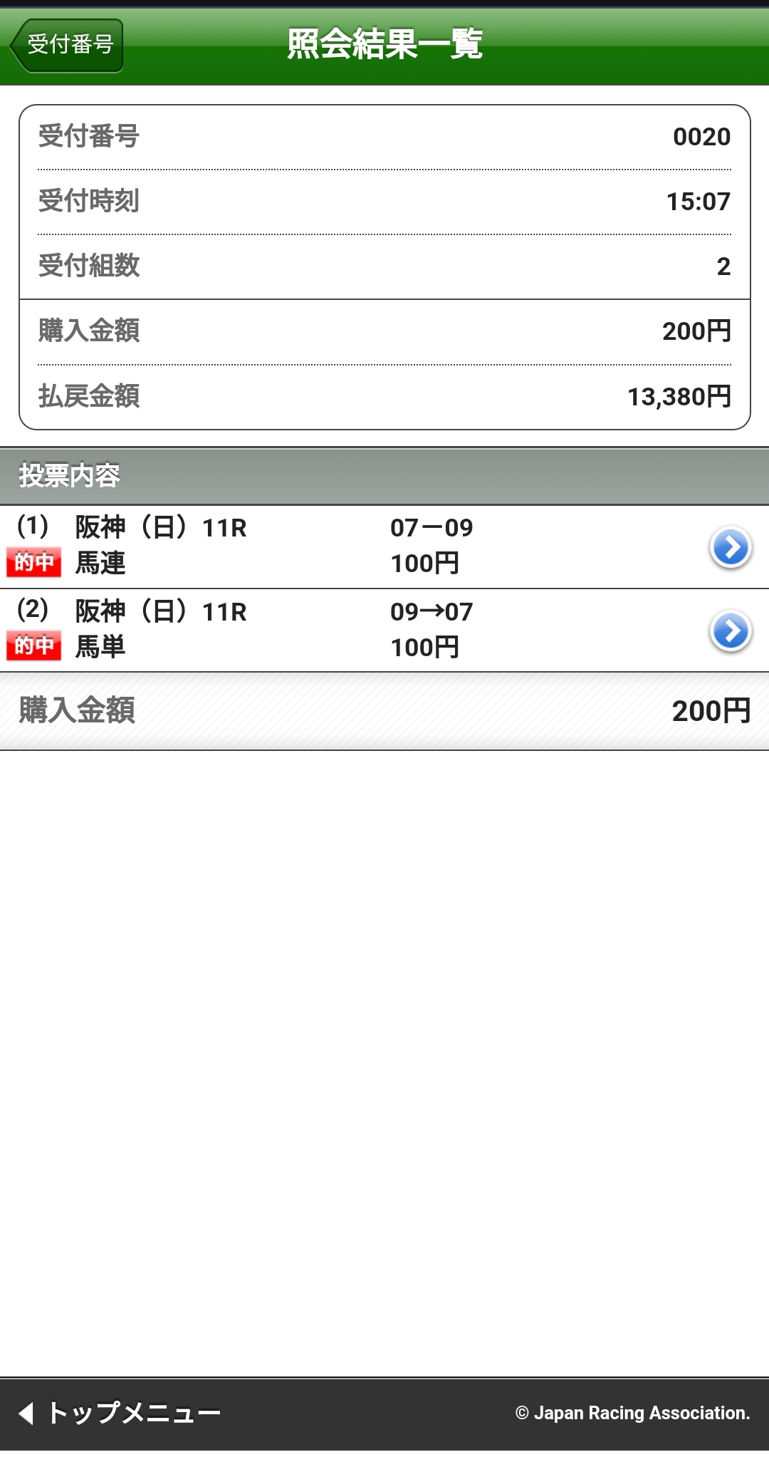 昨年の「」レース結果