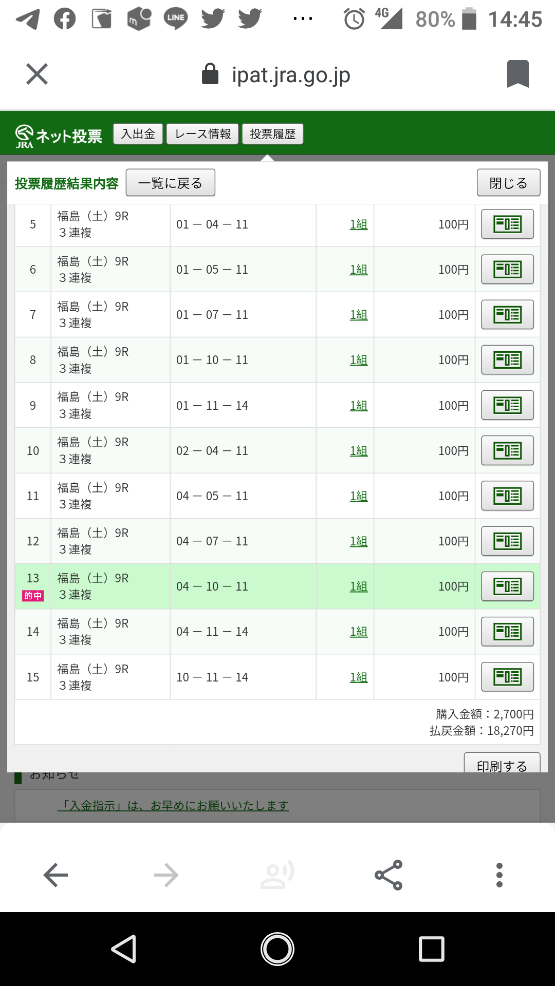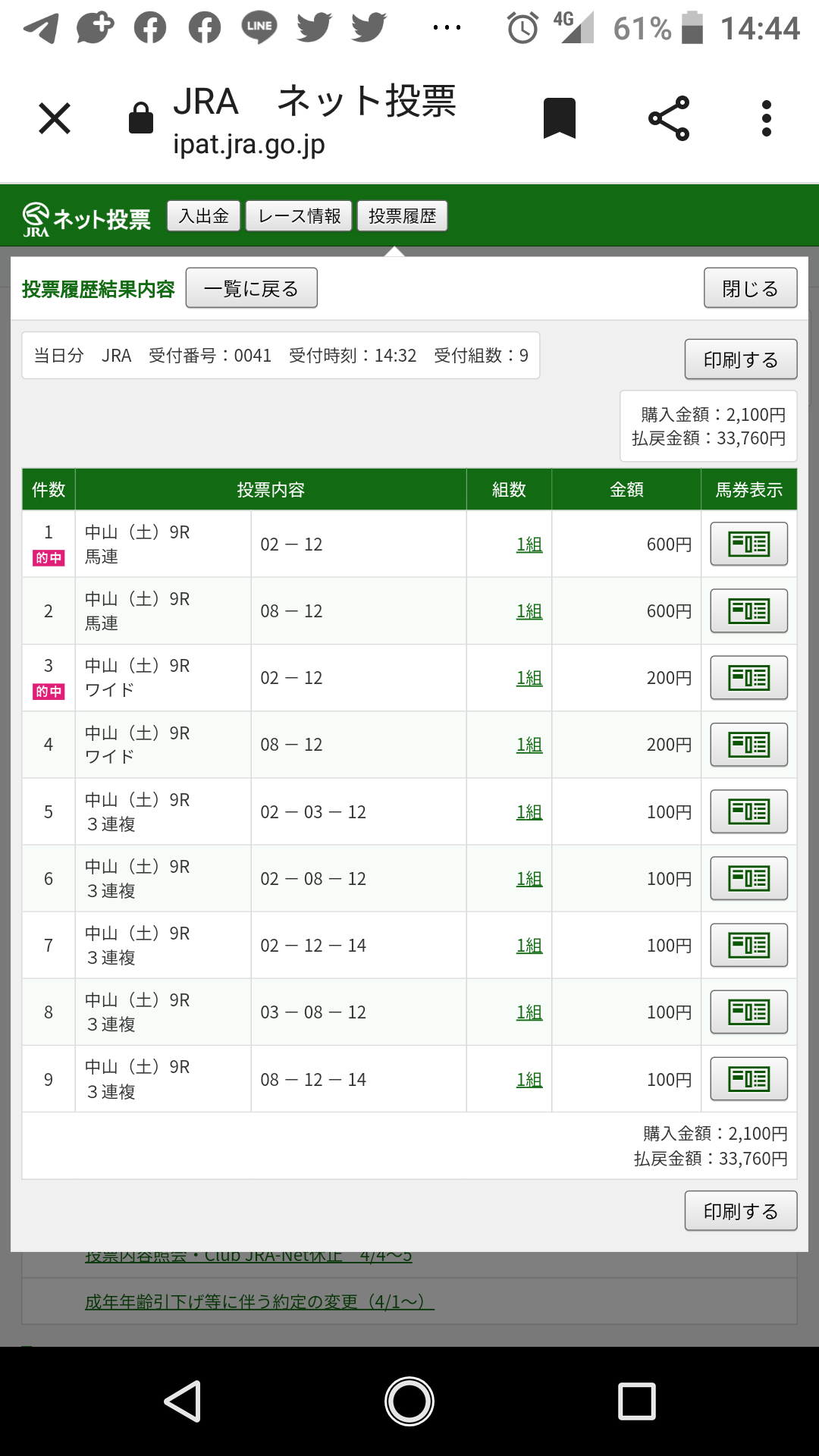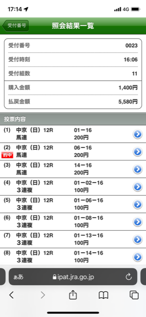 高配当を中心に三連単マルチで取らせていただきました。ありがとうございます!