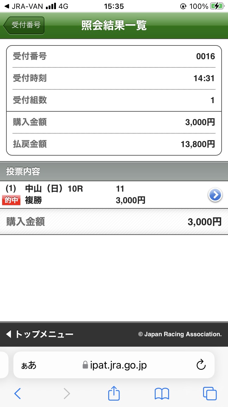 おめでとうございます!何よりも嬉しい会員様からの的中報告です。