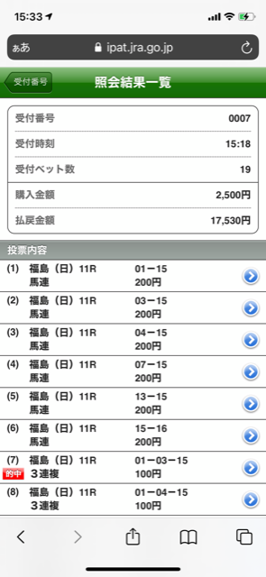 福島11R高配三連単的中させていただきました!ありがとうございます!