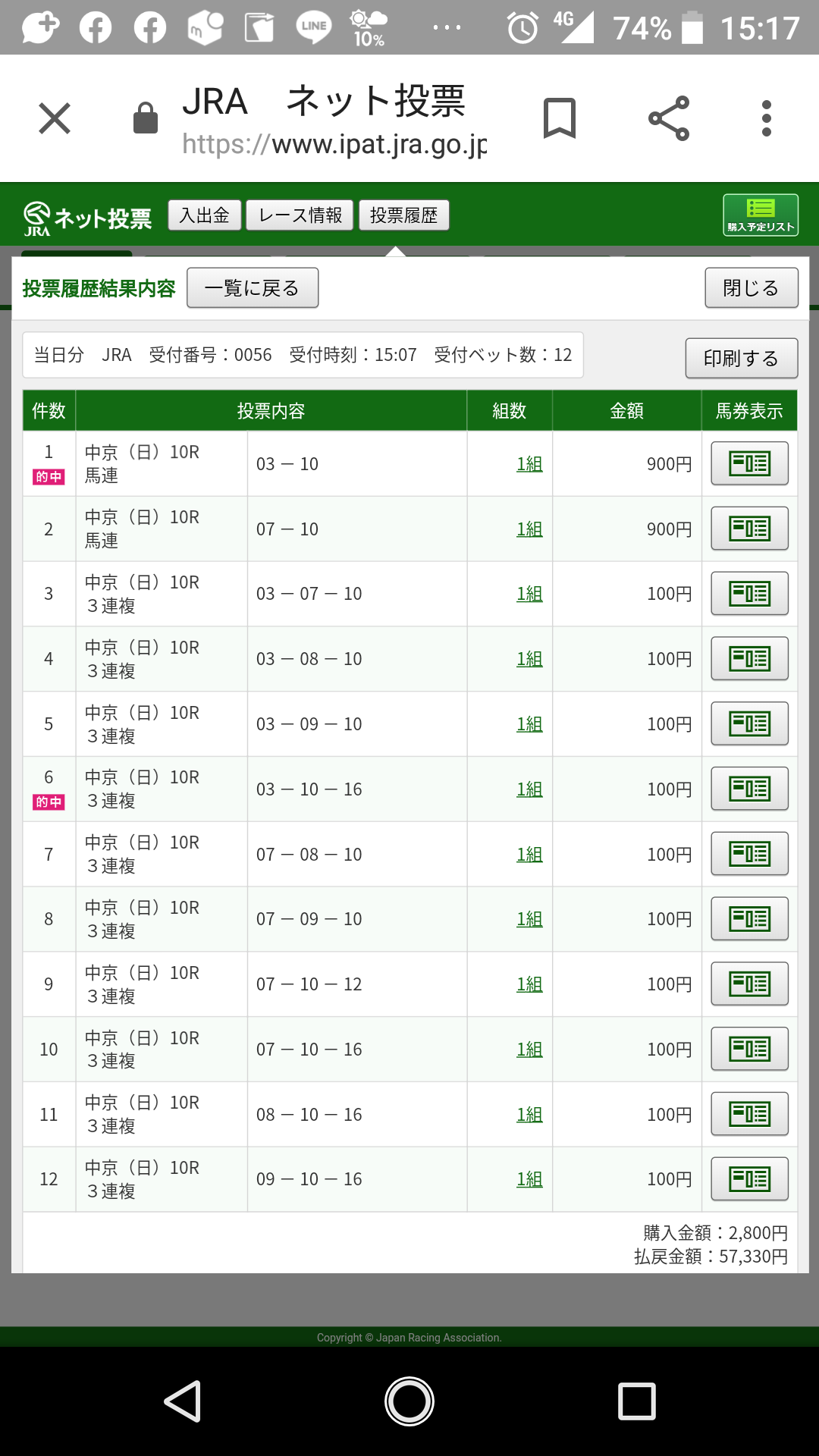 マスターの教え通り高配当を中心に購入させていただき見事三連単10万馬券的中です!