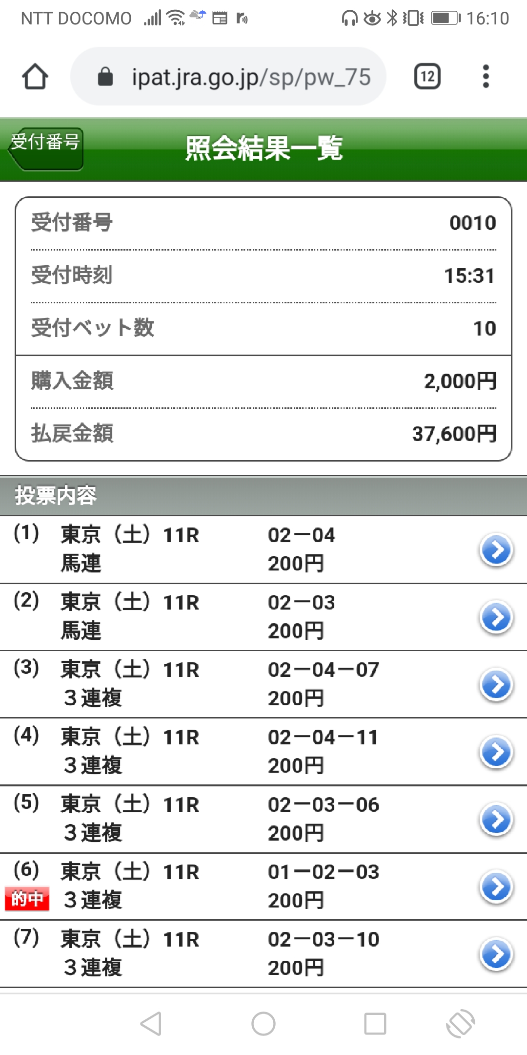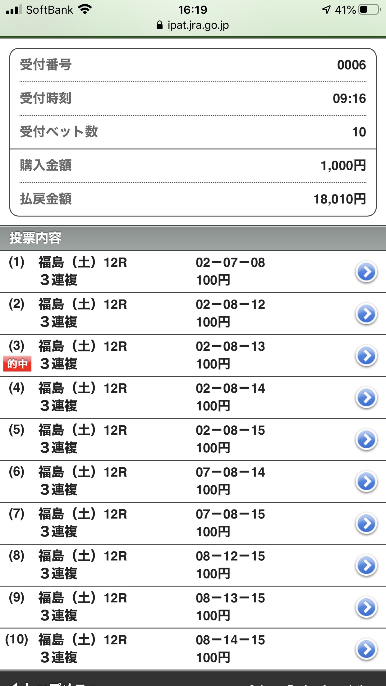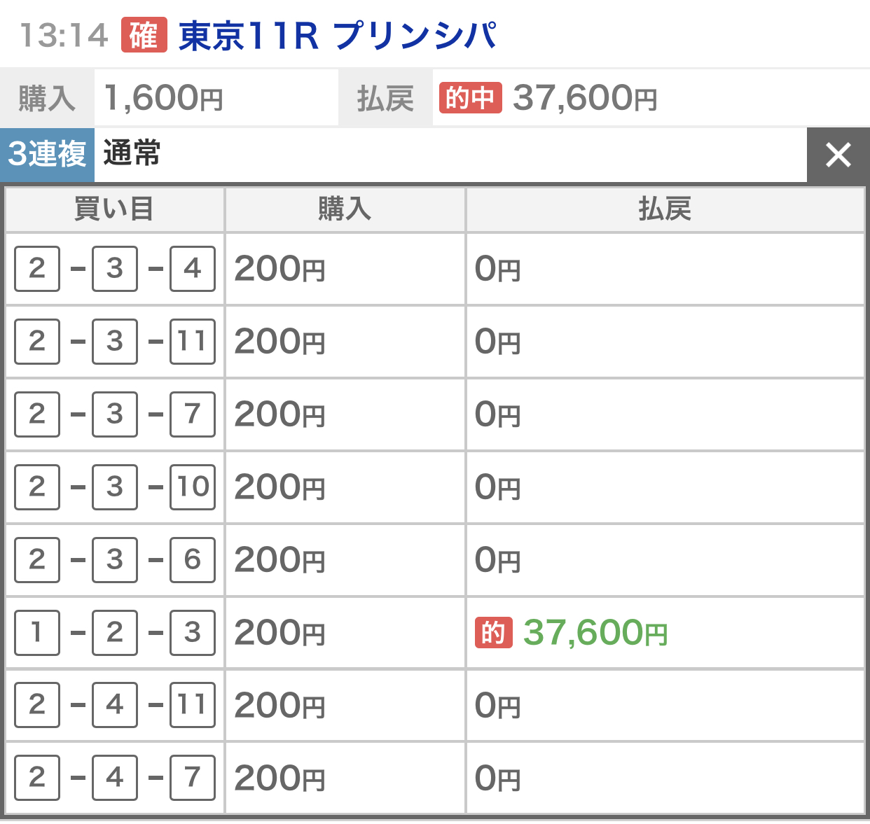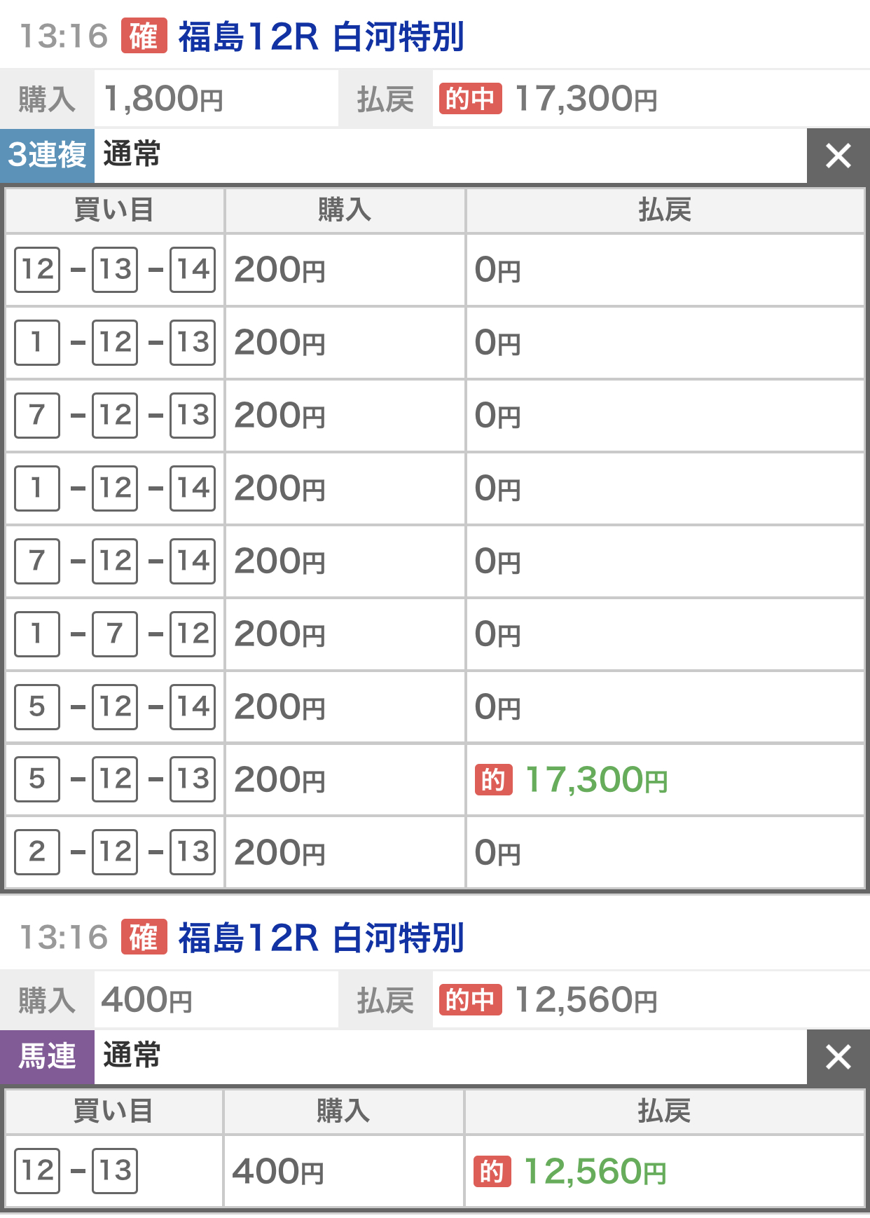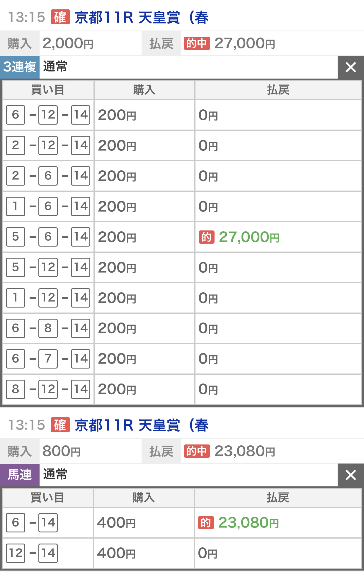上記の馬券的中して嬉しいです。