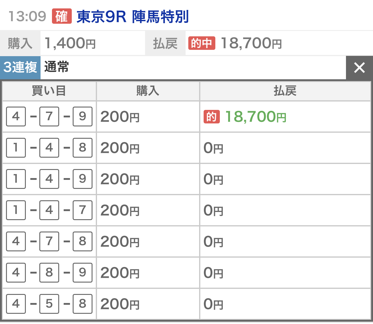 3連複 1-2-3 18,800円