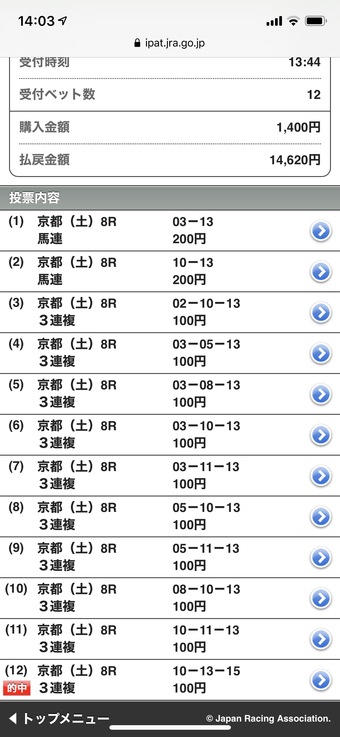 おめでとうございます!何よりも嬉しい会員様からの的中報告です。