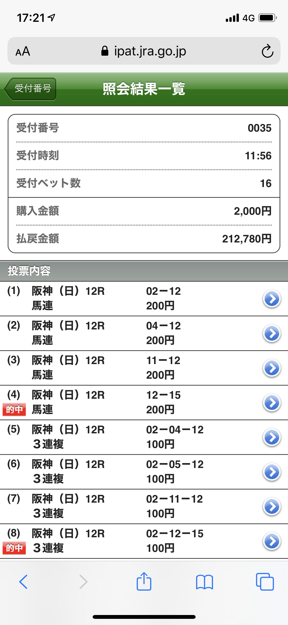 12番の軸から、1番人気と2番人気と3番人気を経由しての3連複を購入してしまい後悔しました。