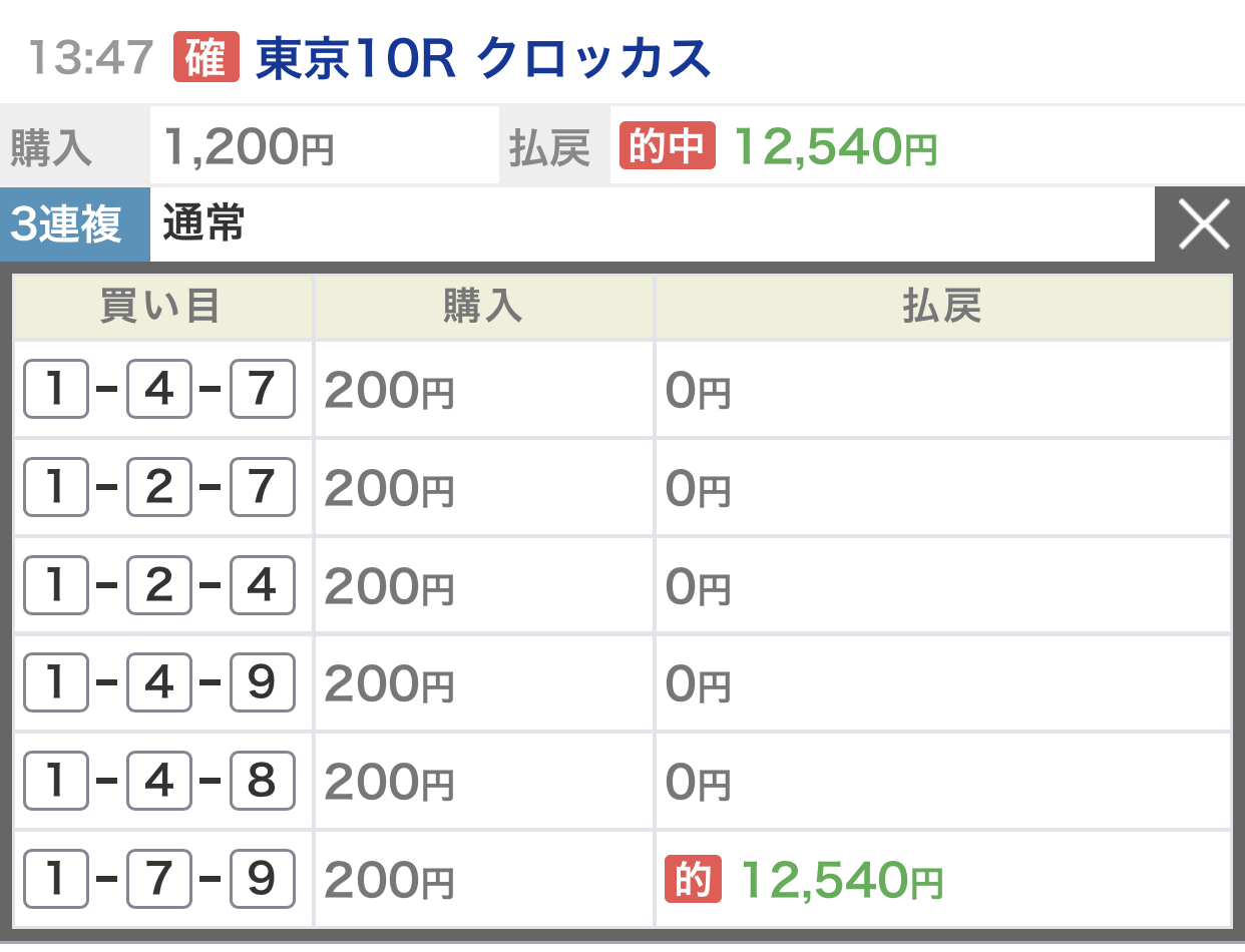 東京開催は苦手意識がありますがなんとかマスターの買い目をみてこれからも的中させていきたいです。今後ともよろしくお願いいたします。