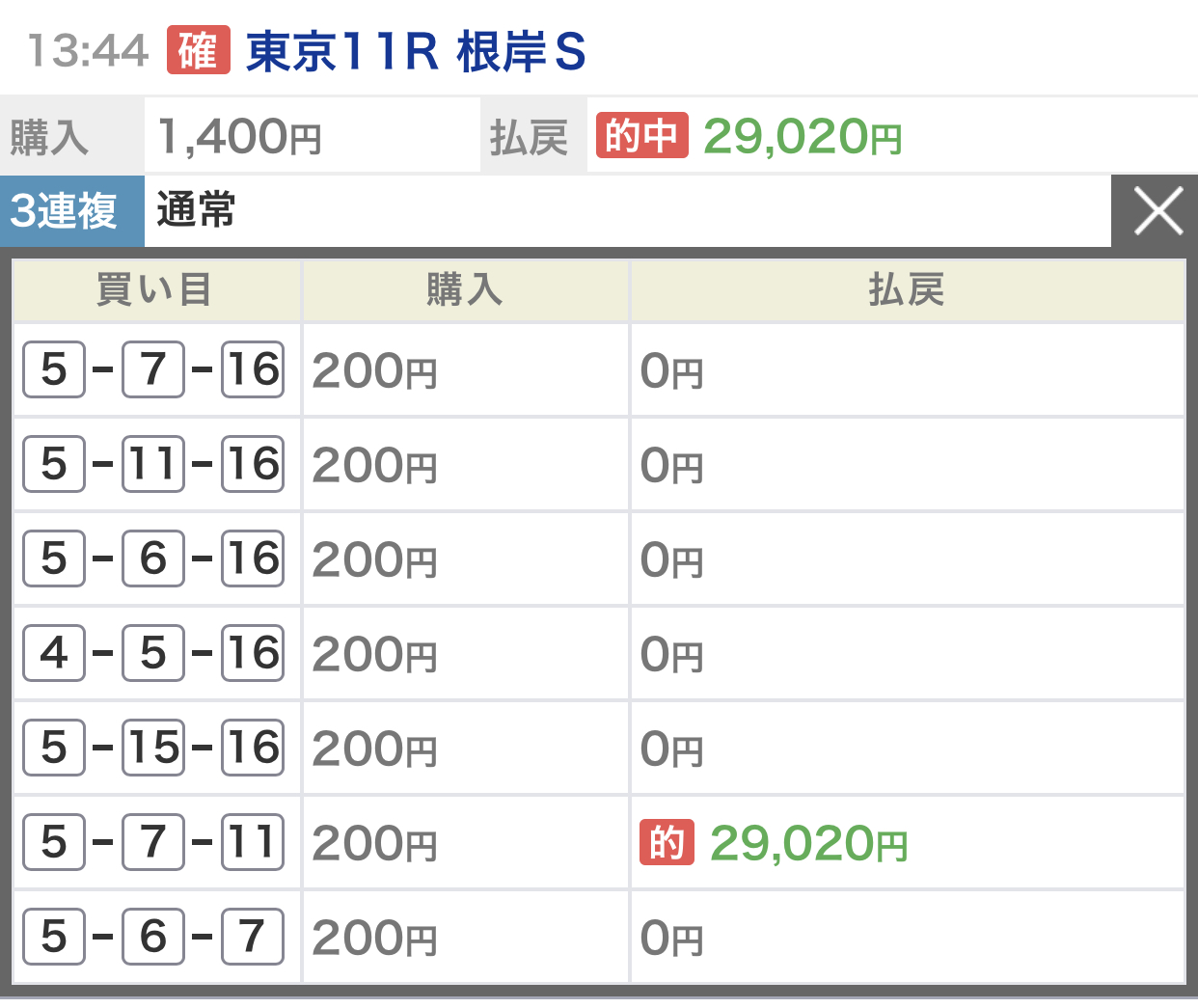 重賞が当たるとやはり他のレース的中よりかなり気持ちがいいですね^^最近は3連単の取り方も分かったきたので競馬がより楽しめています。