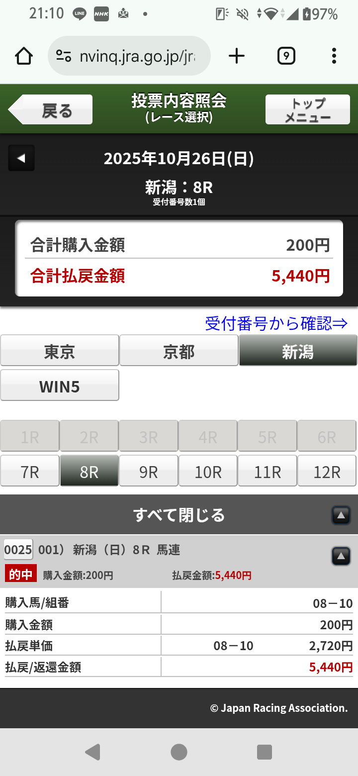 東京11R三連単35万馬券的中させていただきました!ありがとうございます!