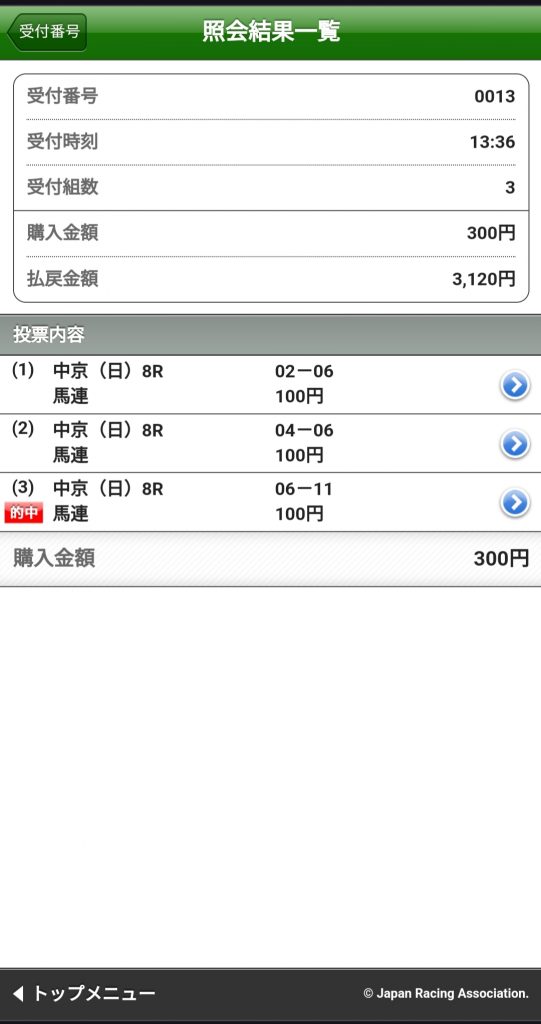 おめでとうございます!何よりも嬉しい会員様からの的中報告です。