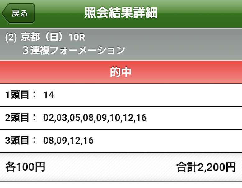 本日3場メインレース全て的中させていただきました!ありがとうございます!