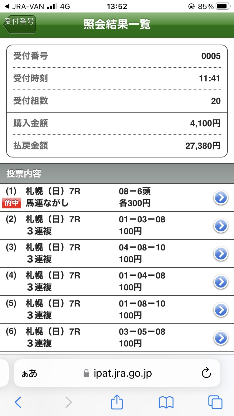 そして、札幌クイーンステークスも三連単的中いたしました!