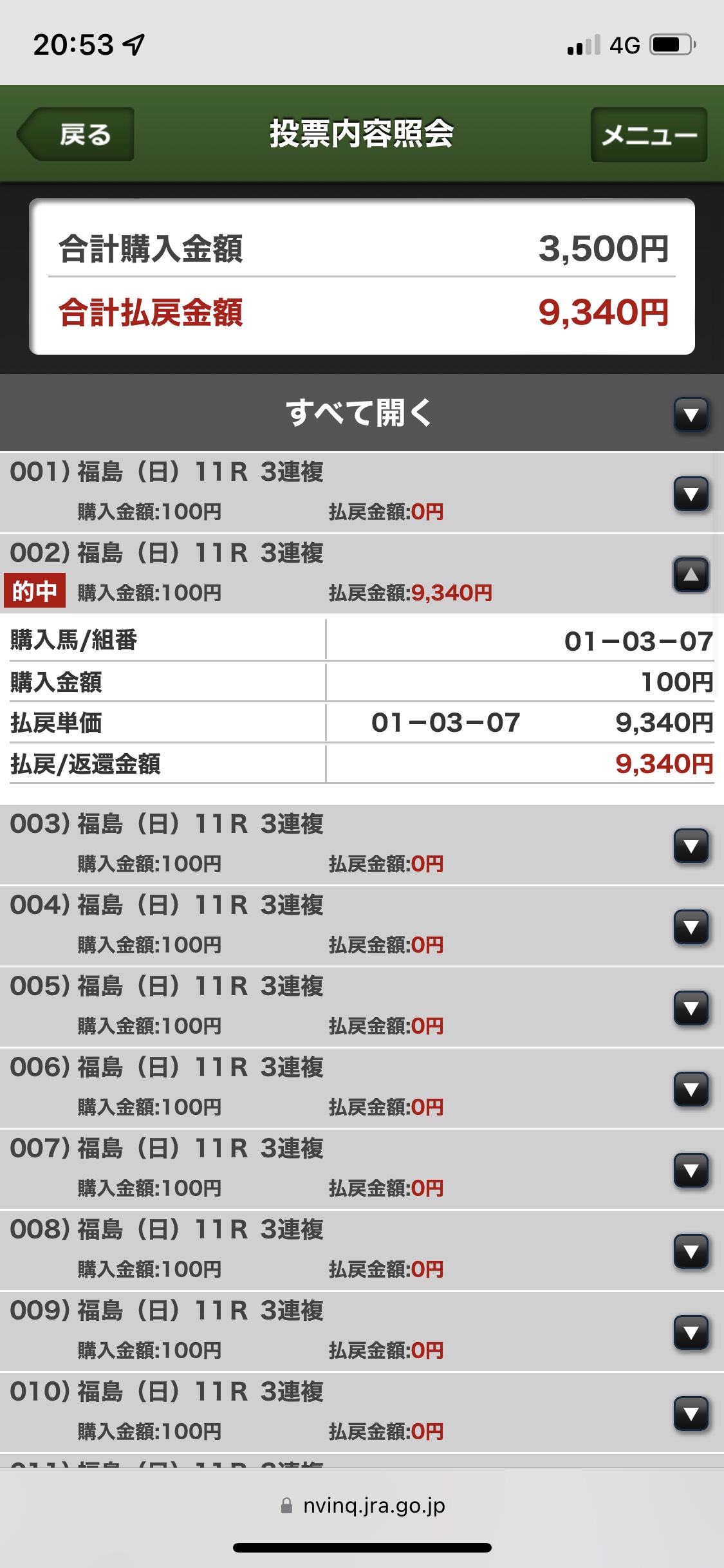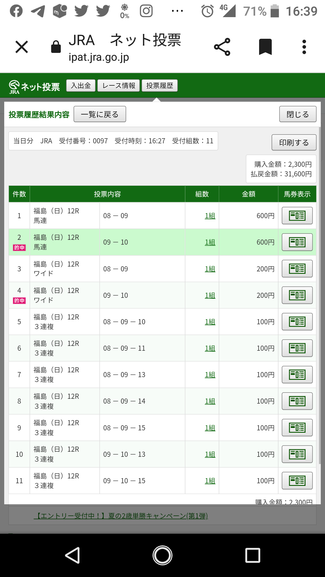 (6/25(土))早速ご利用した函館11R(3連単軸1頭マルチ)にて、200円→34,560円となりました!!!