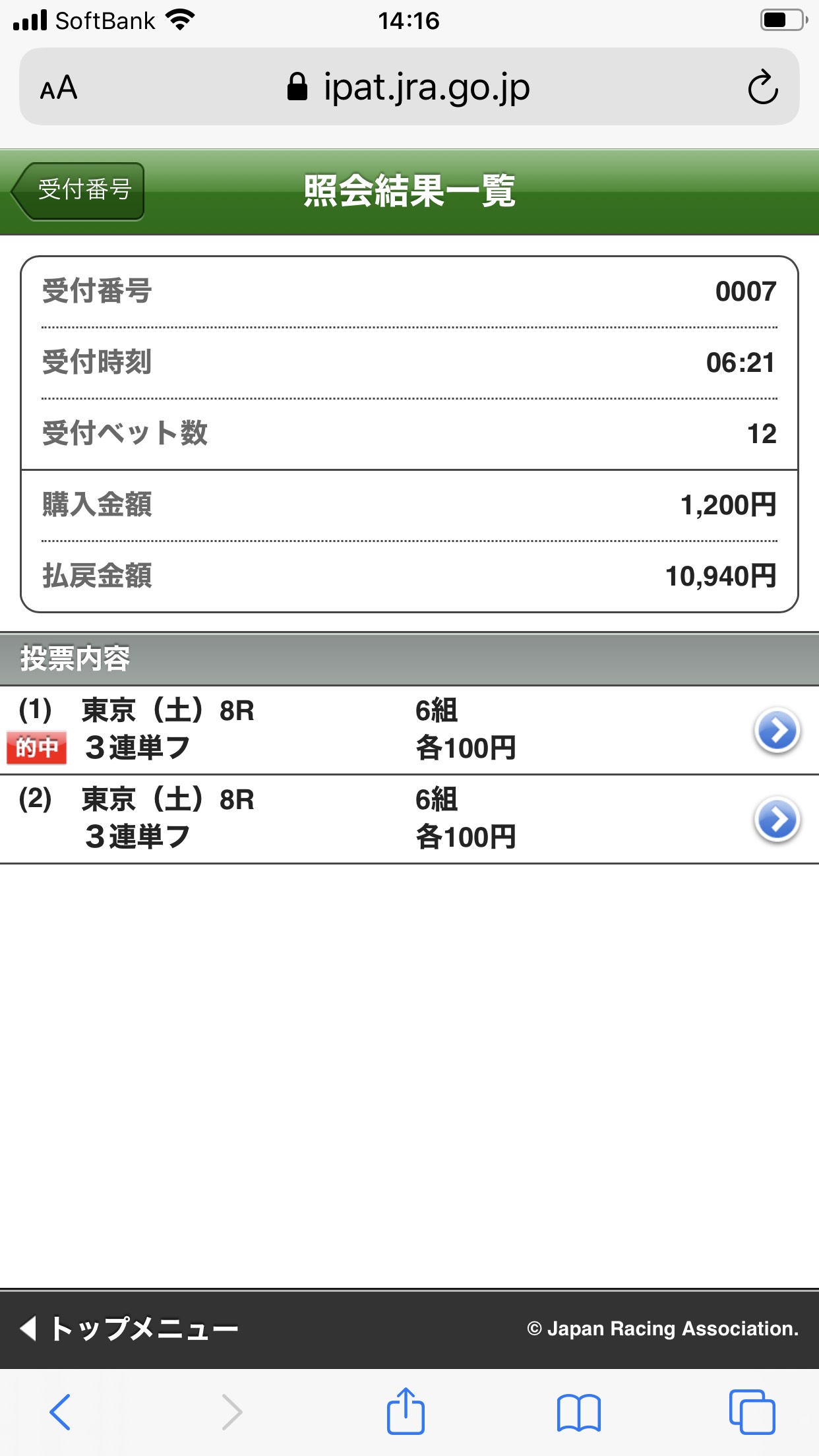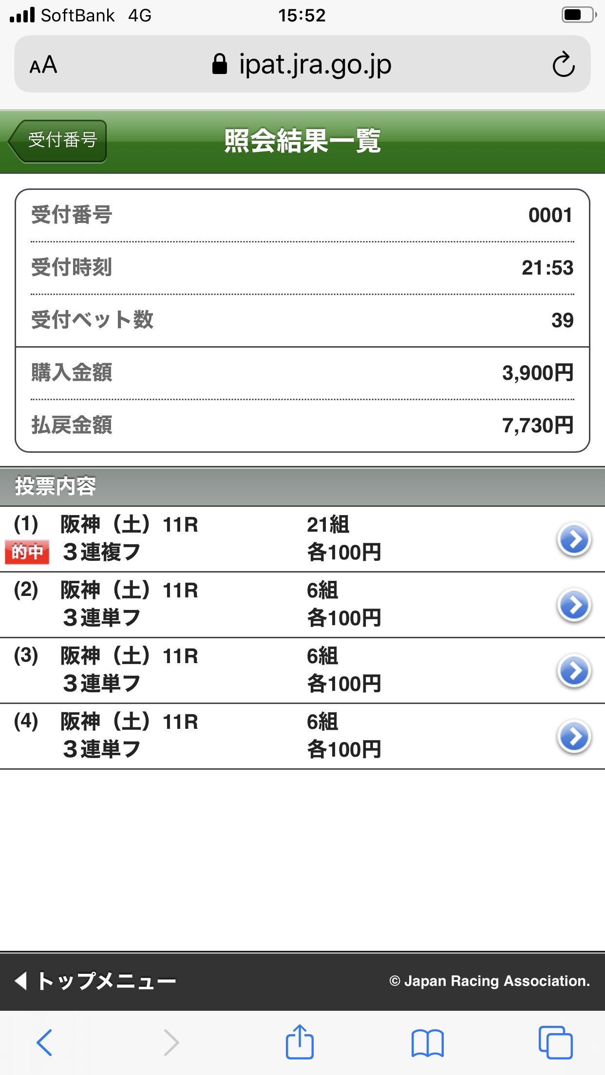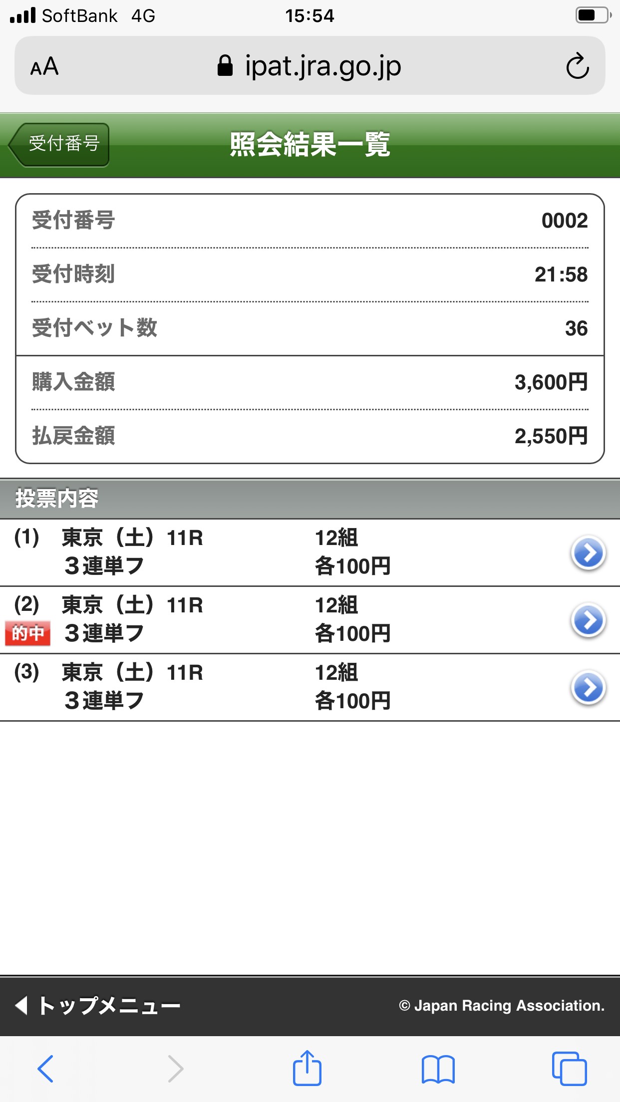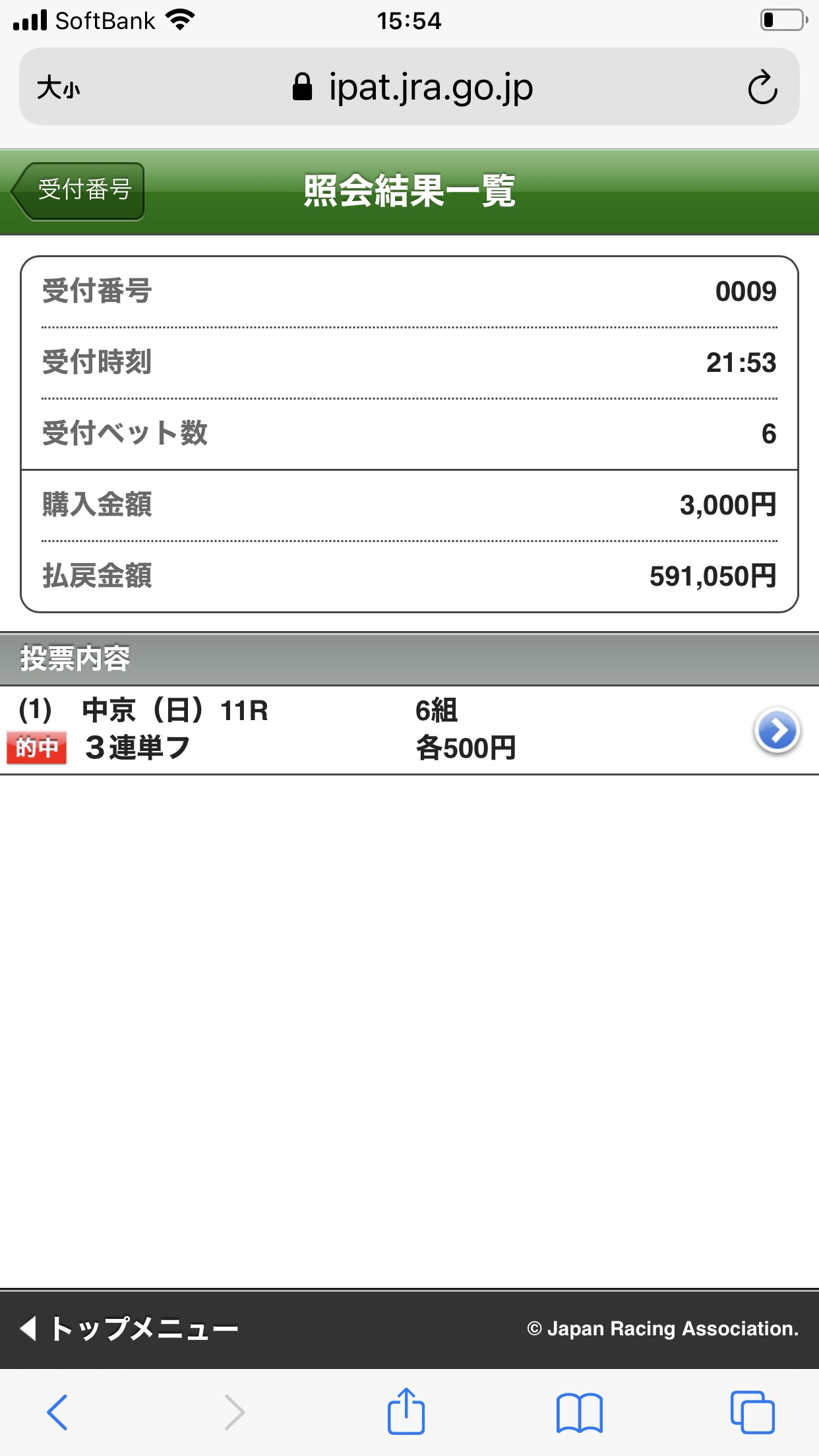 仕事が終わって結果をみたらまさかの高配当にビックリしました。