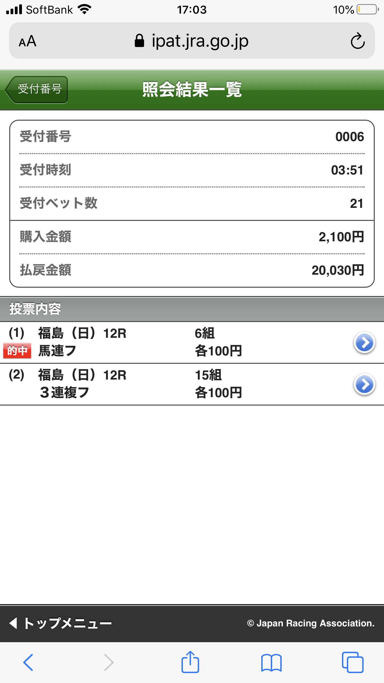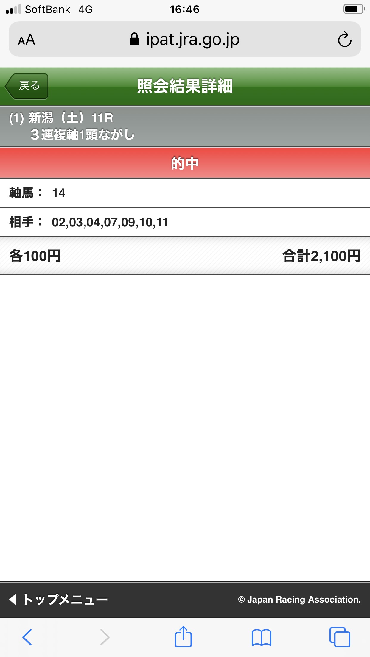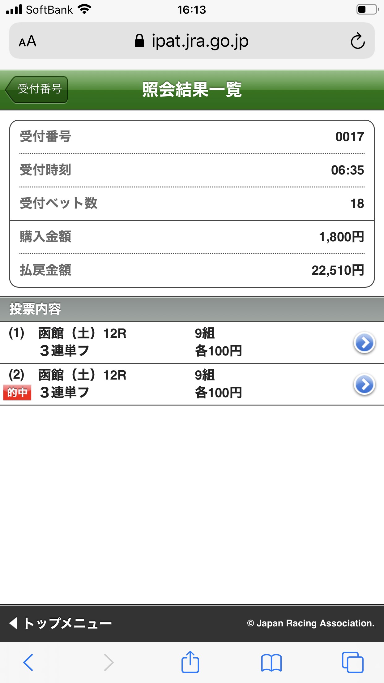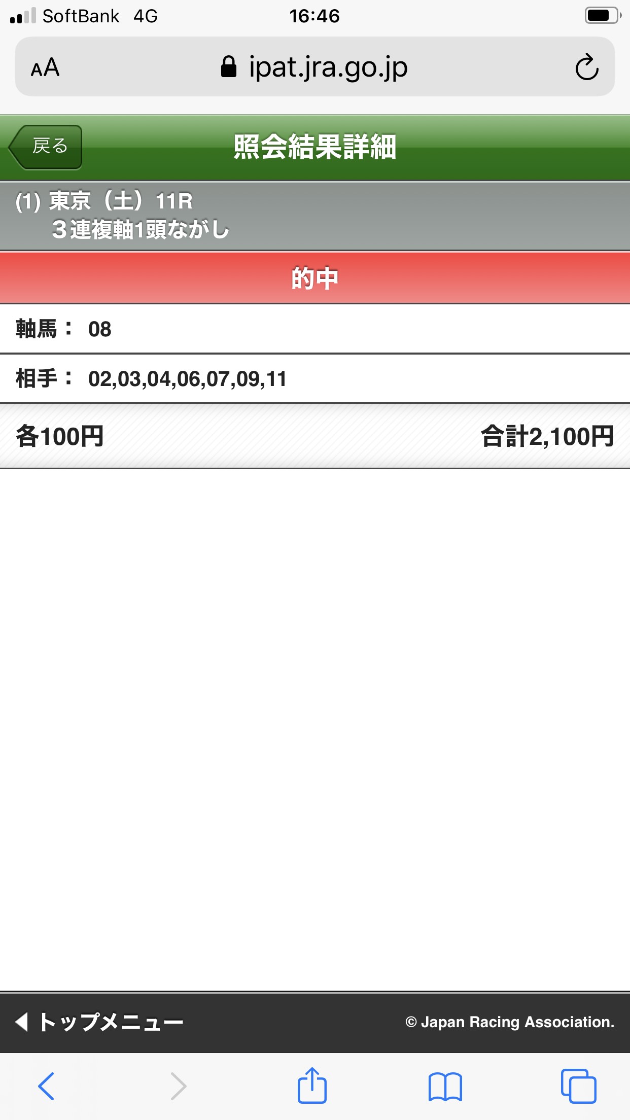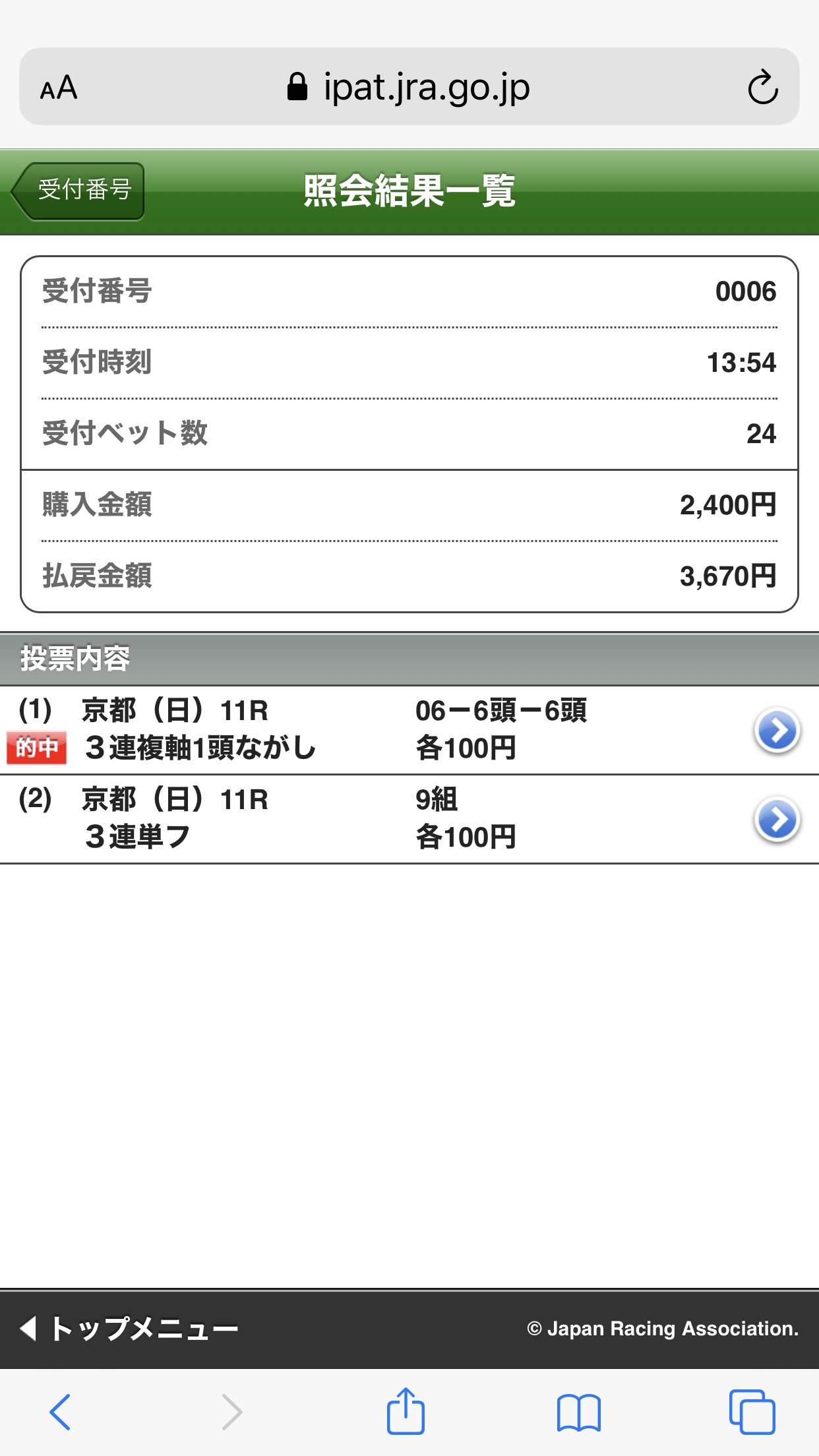 仕事が終わって結果をみたらまさかの高配当にビックリしました。