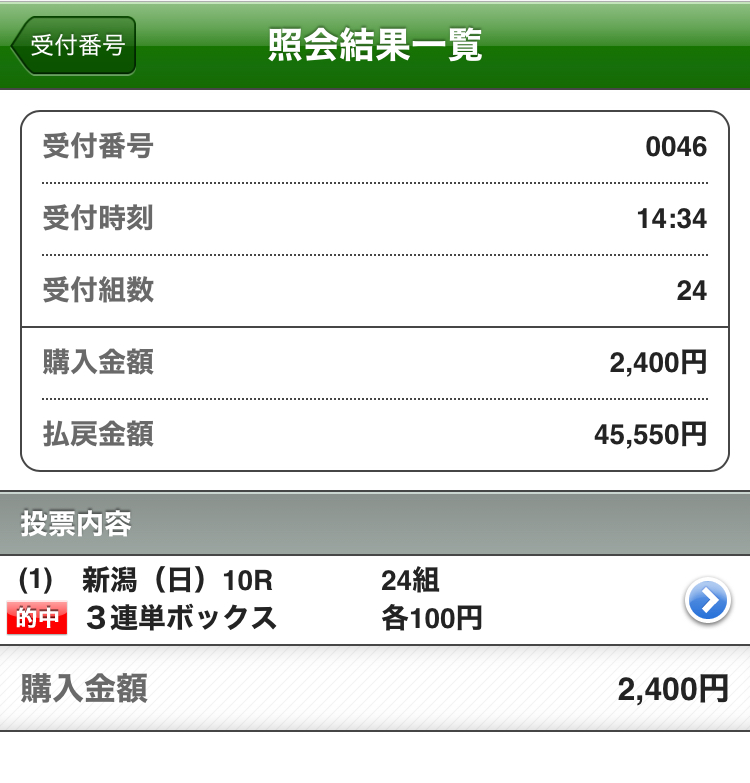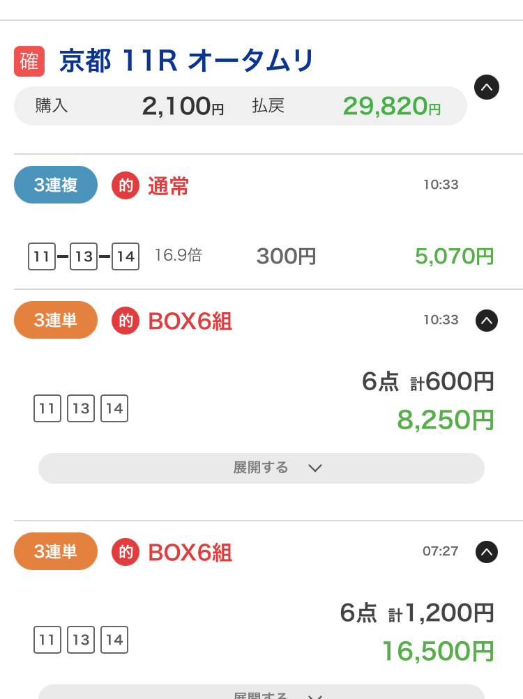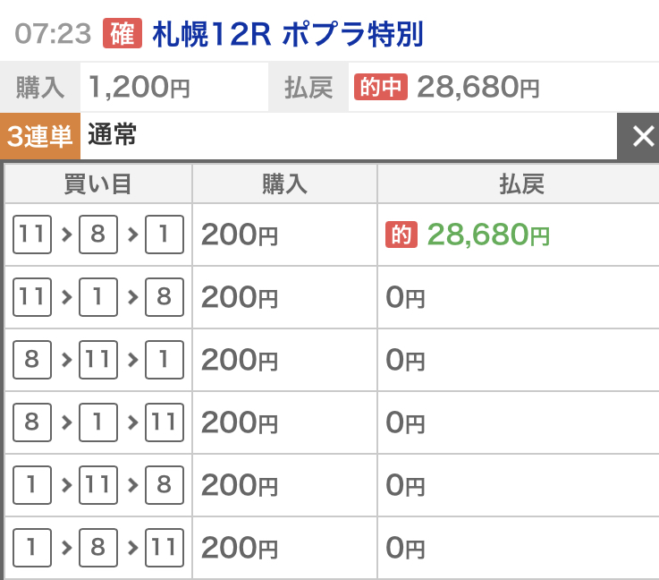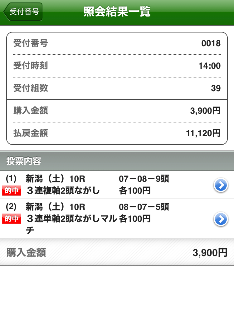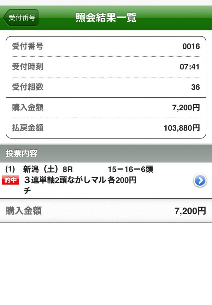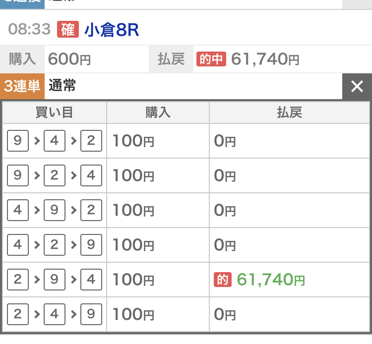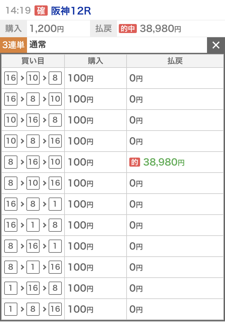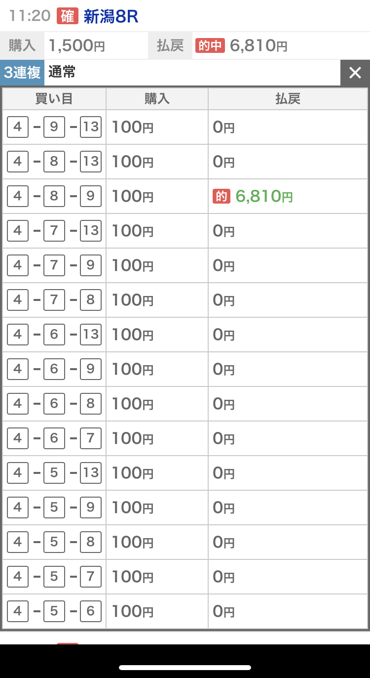 マスターの軸予想から応用して取れました。ありがとうございます。