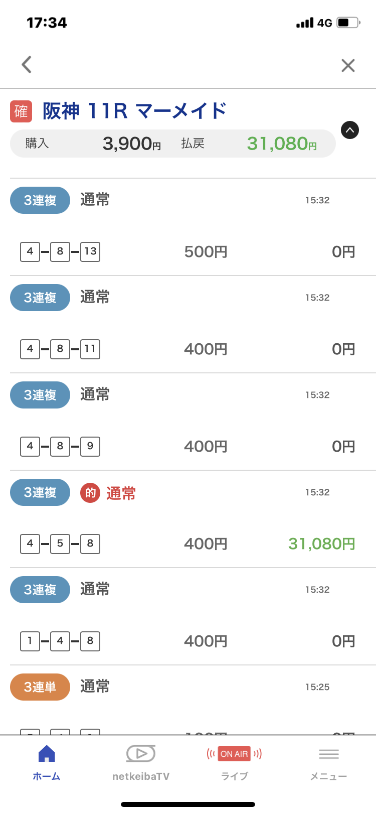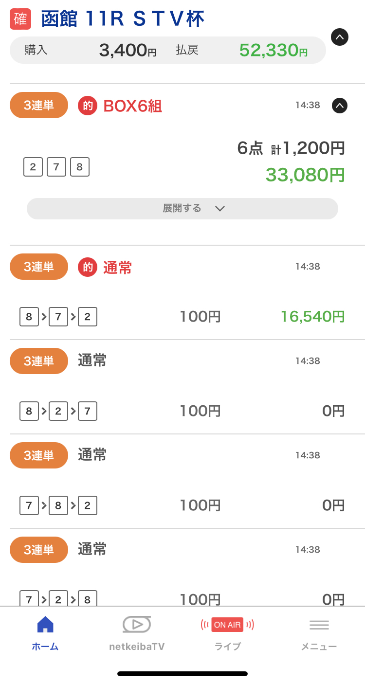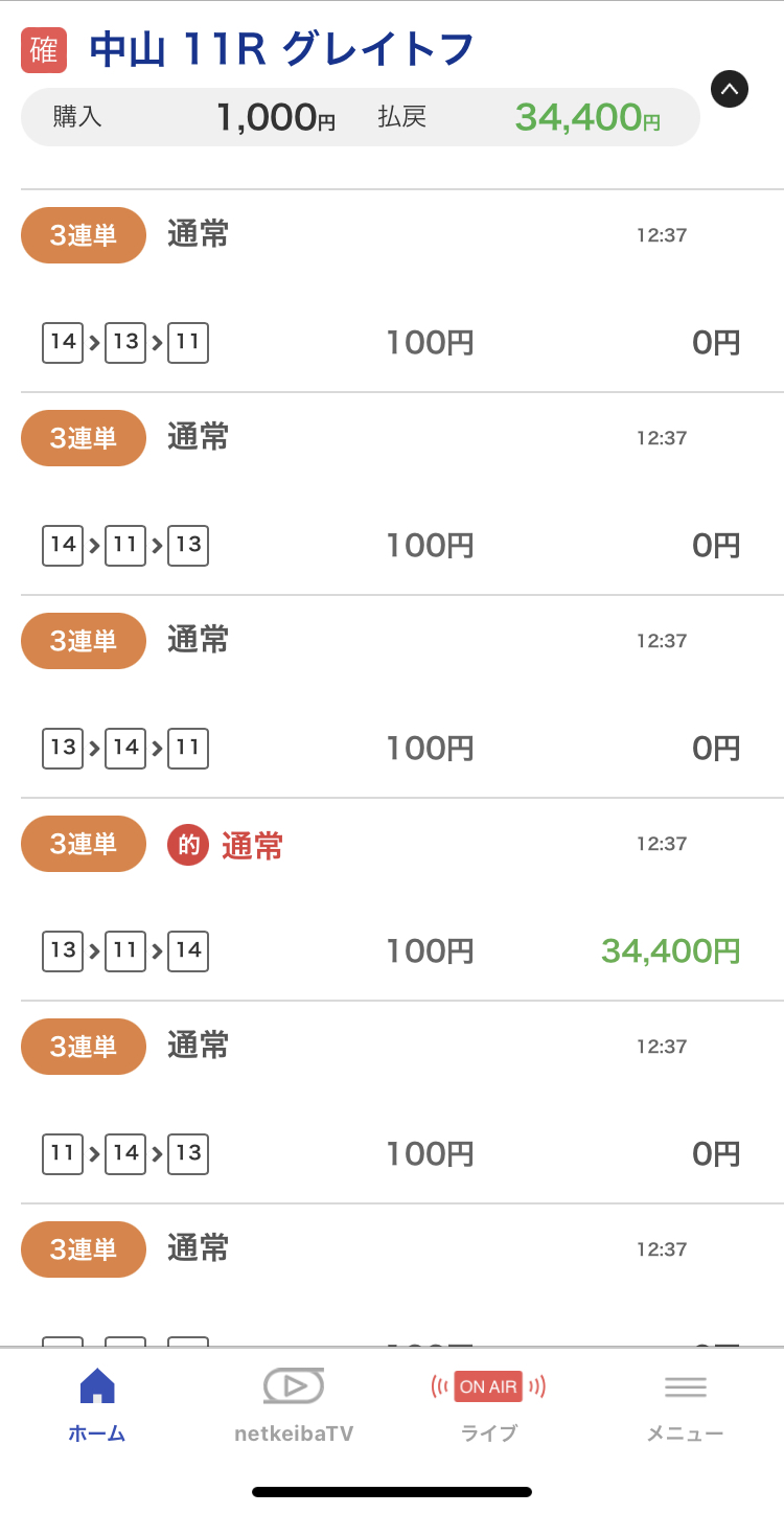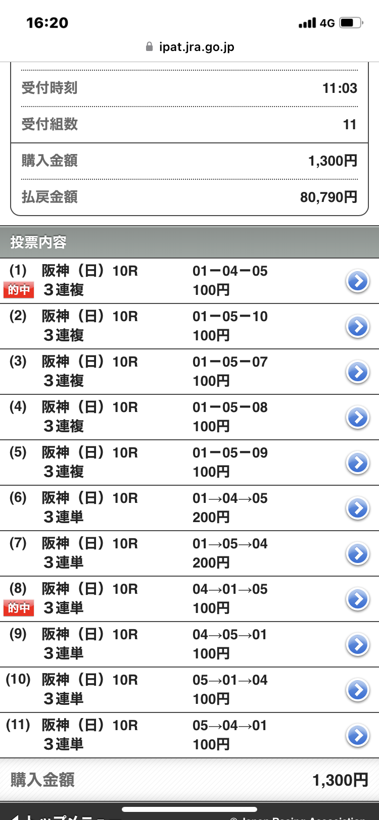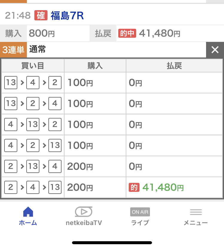 マスターの軸予想から応用して取れました。ありがとうございます。