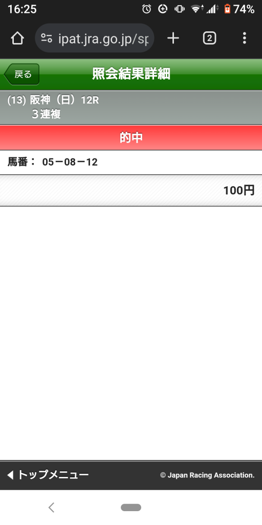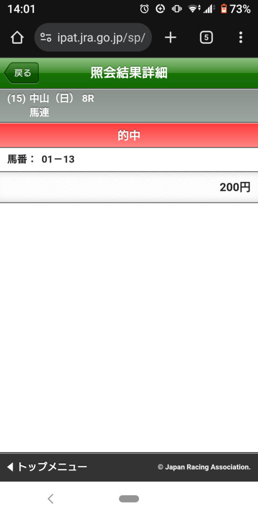 今日、中山競馬場観戦で高配当を的中する事が出来ました。有難うございました。