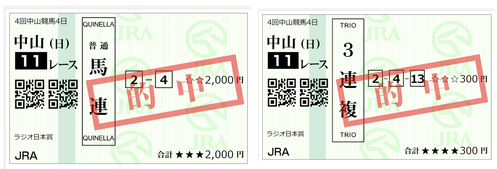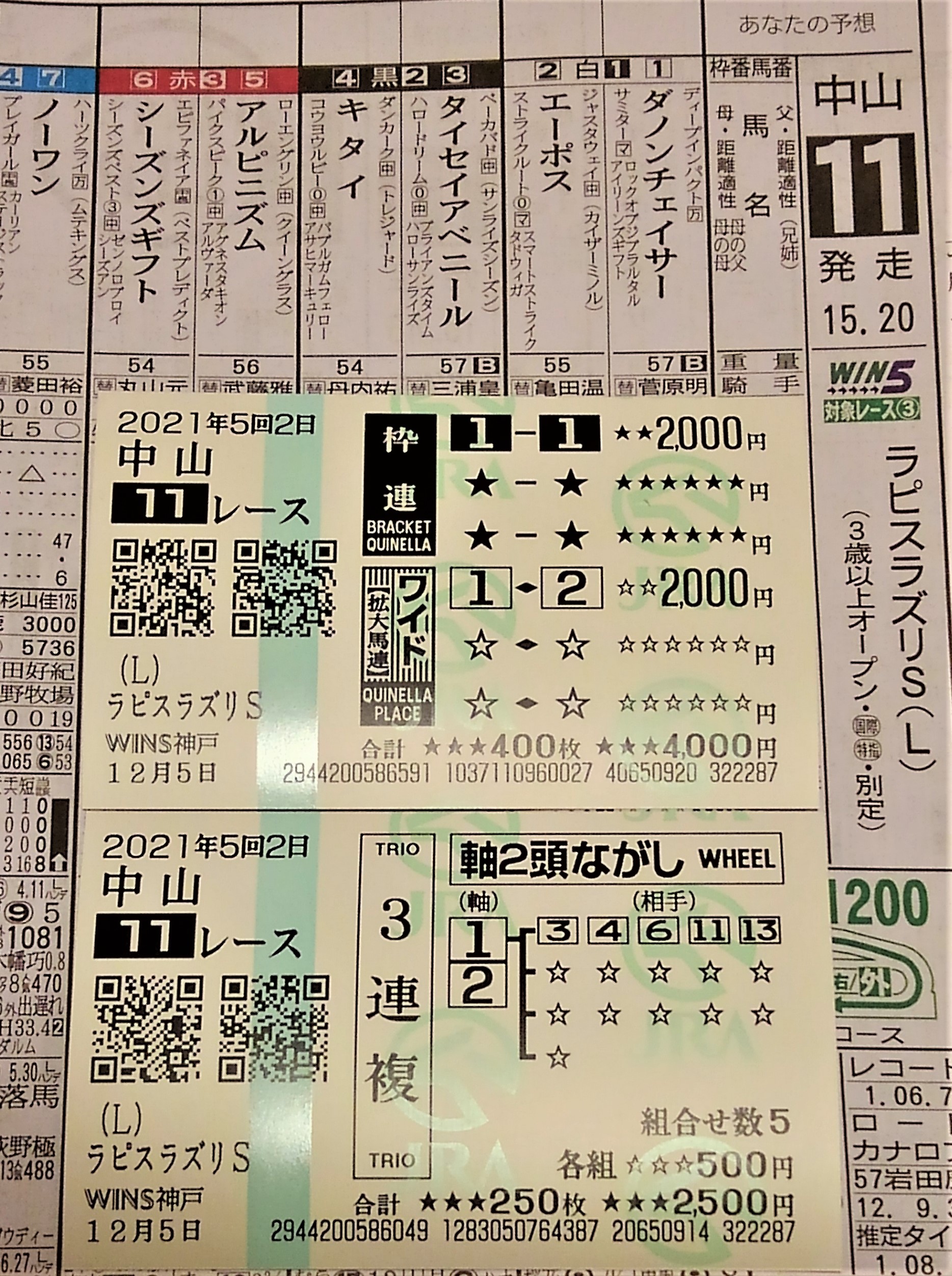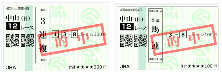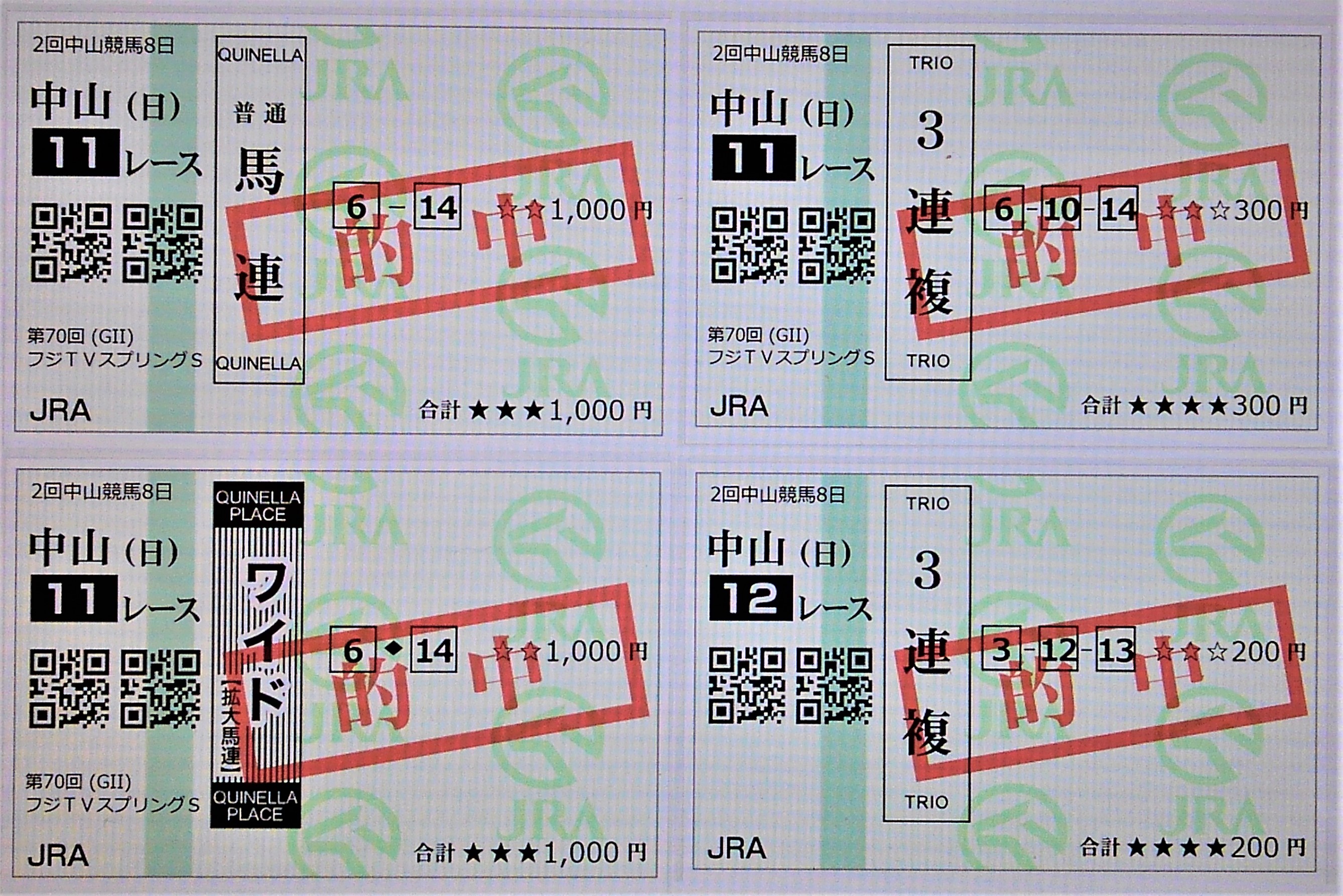 中山11R 馬連・ワイド・三連複中山12R 三連複