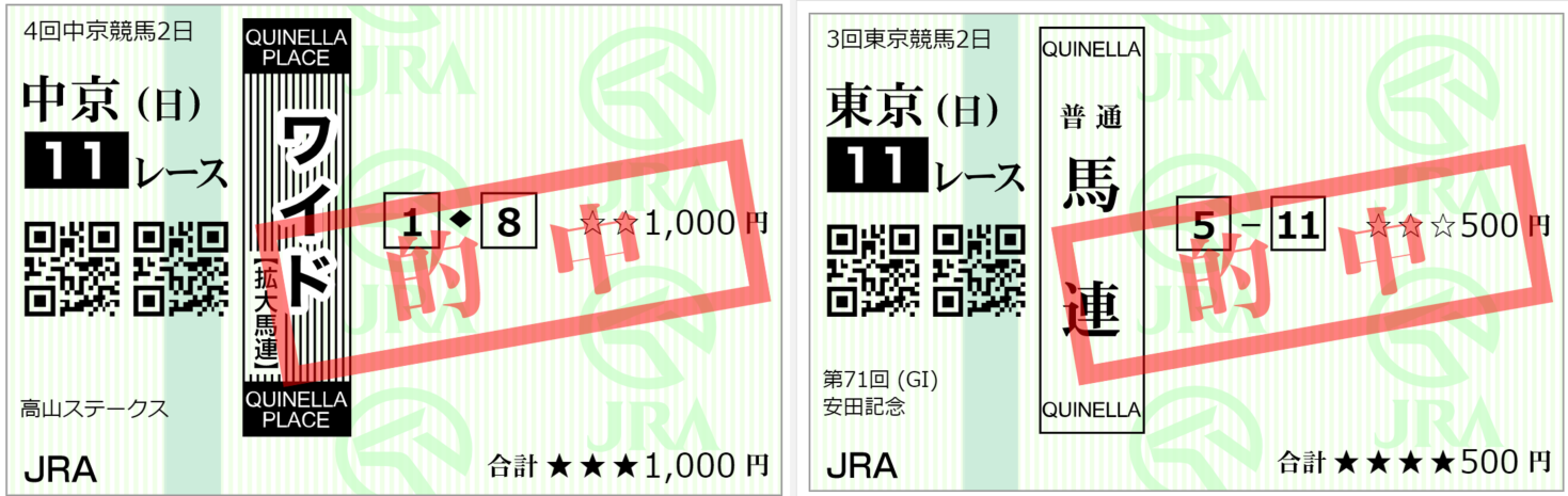 今日もありがとうございます。 今日は各11R・12R(計6レース)を購入しました。